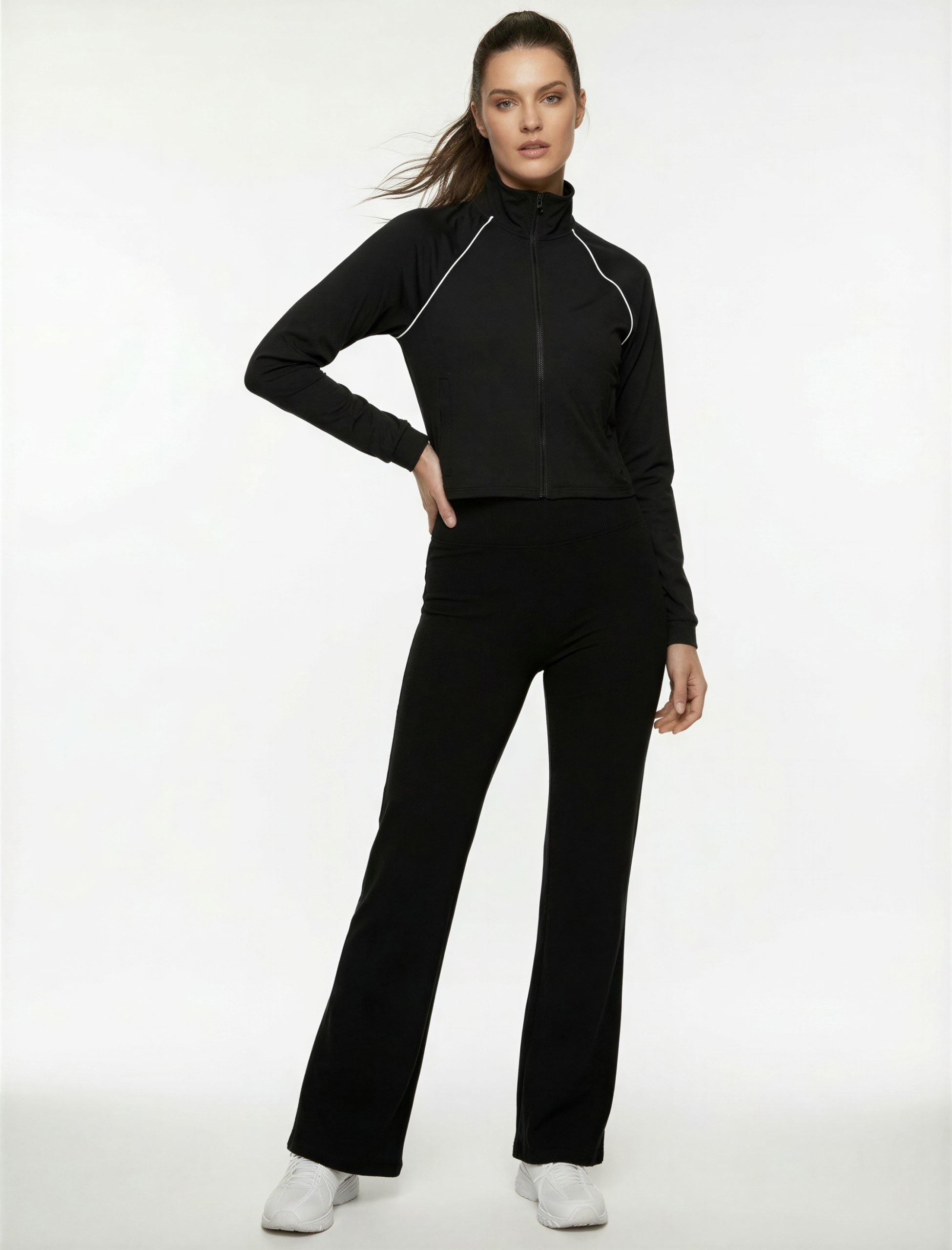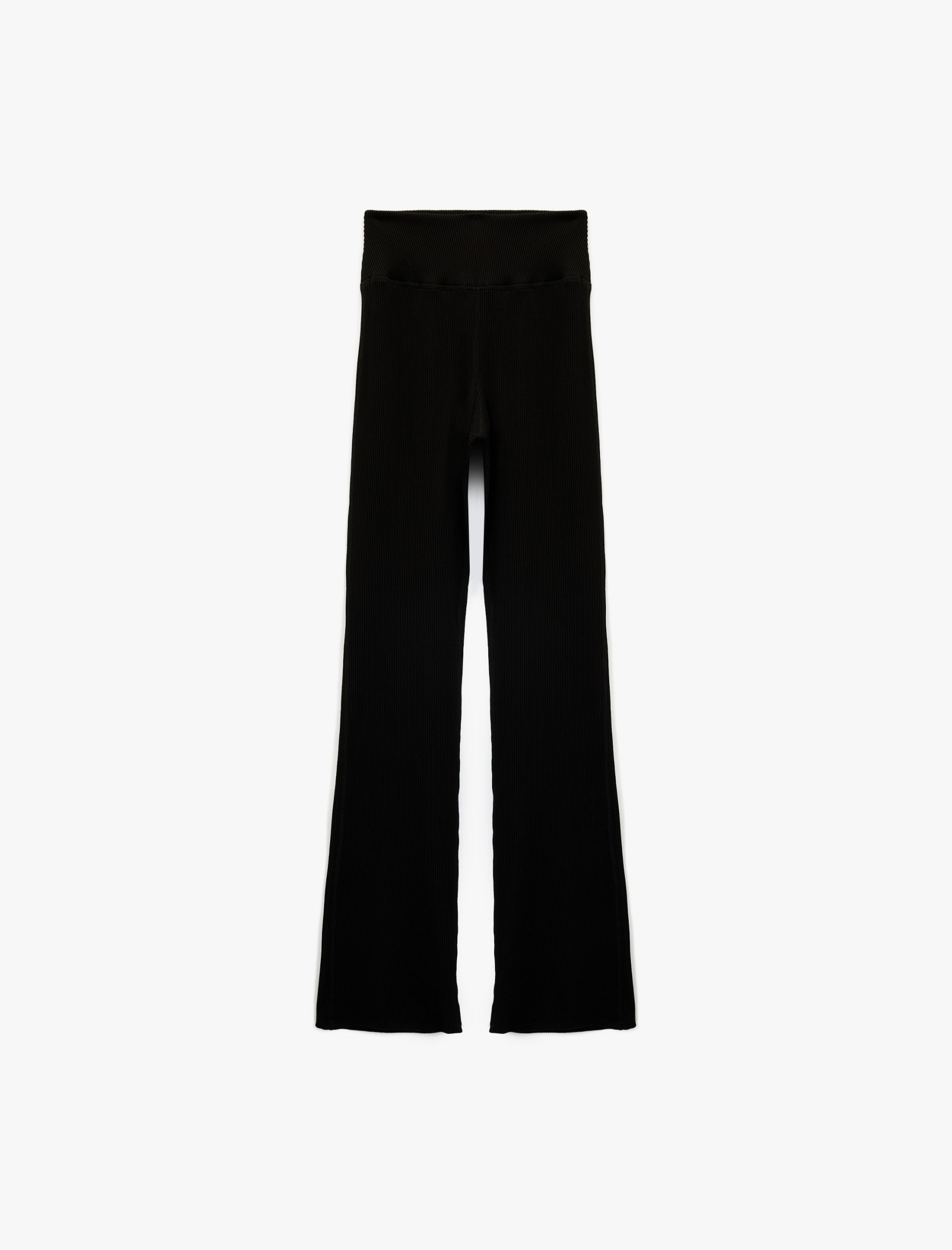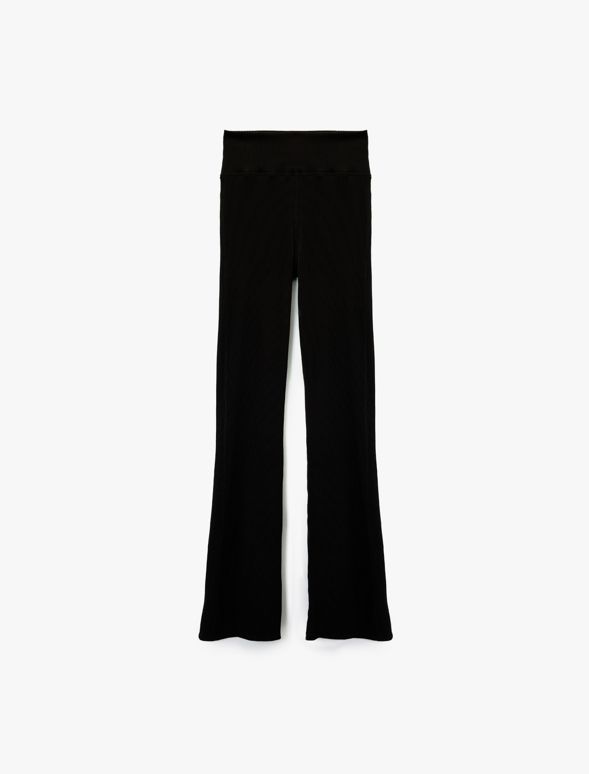 High-waisted, flared sports leggings offer comfortable and trendy style. The slim fit silhouette gently contours the body while providing freedom of movement. Featuring a flexible and durable construction, they make an ideal choice for athletic activities. The ankle-length design perfectly complements both daily and sporty outfits.