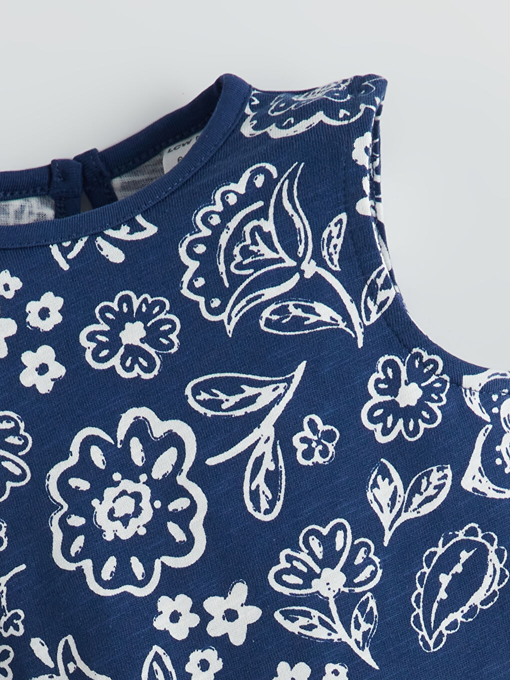 Tags: 2-piece set, Baby Girl, bicycle collar, cotton, elastic waist, floral, indigo, sleeveless