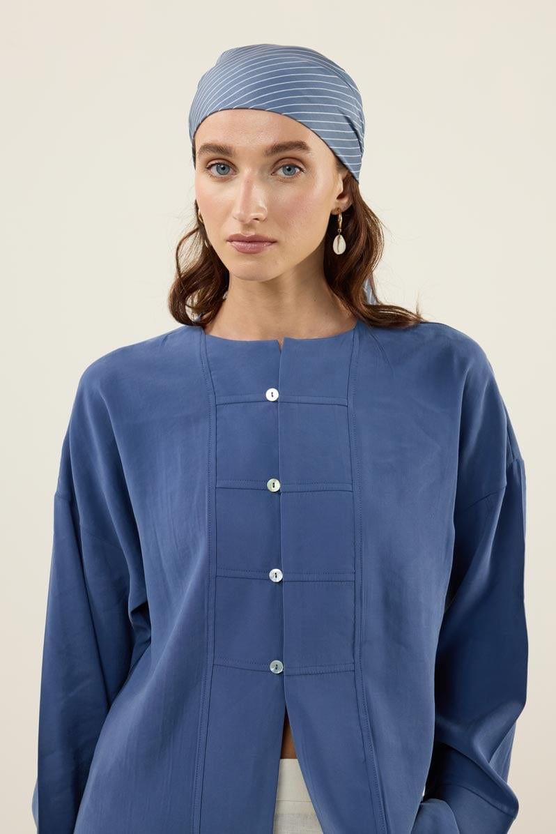 Indigo Modal Tunic with Mother-of-Pearl Buttons