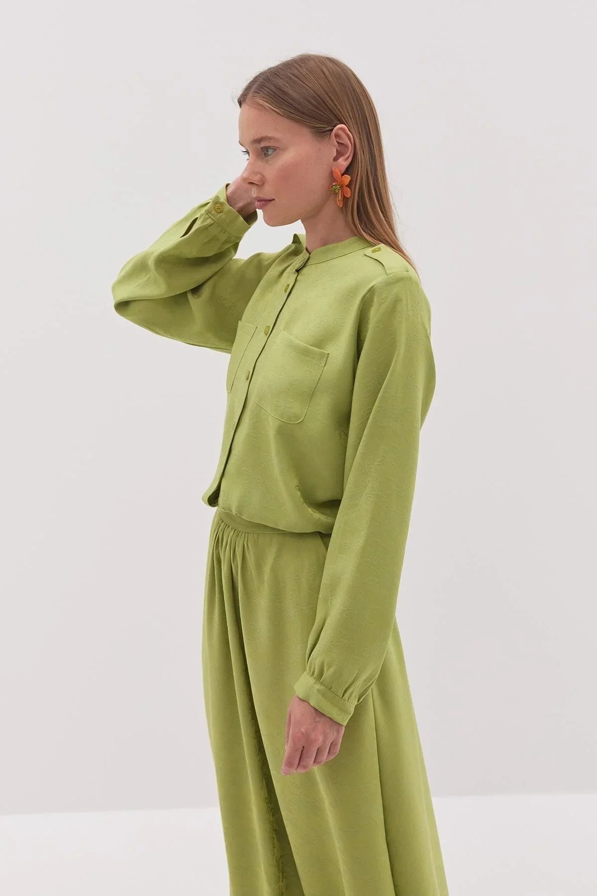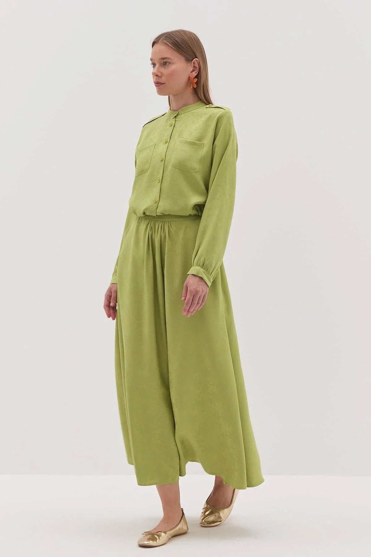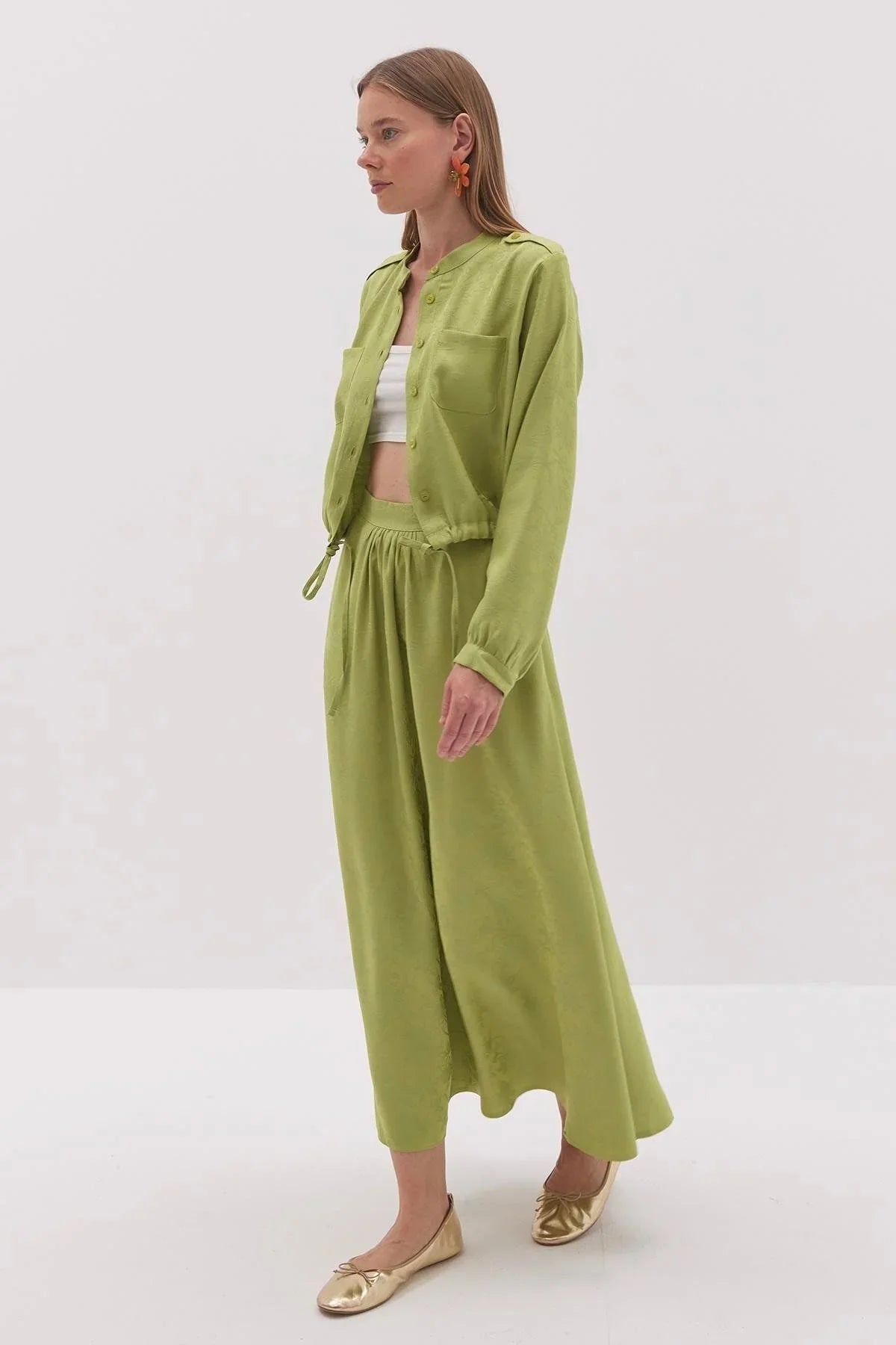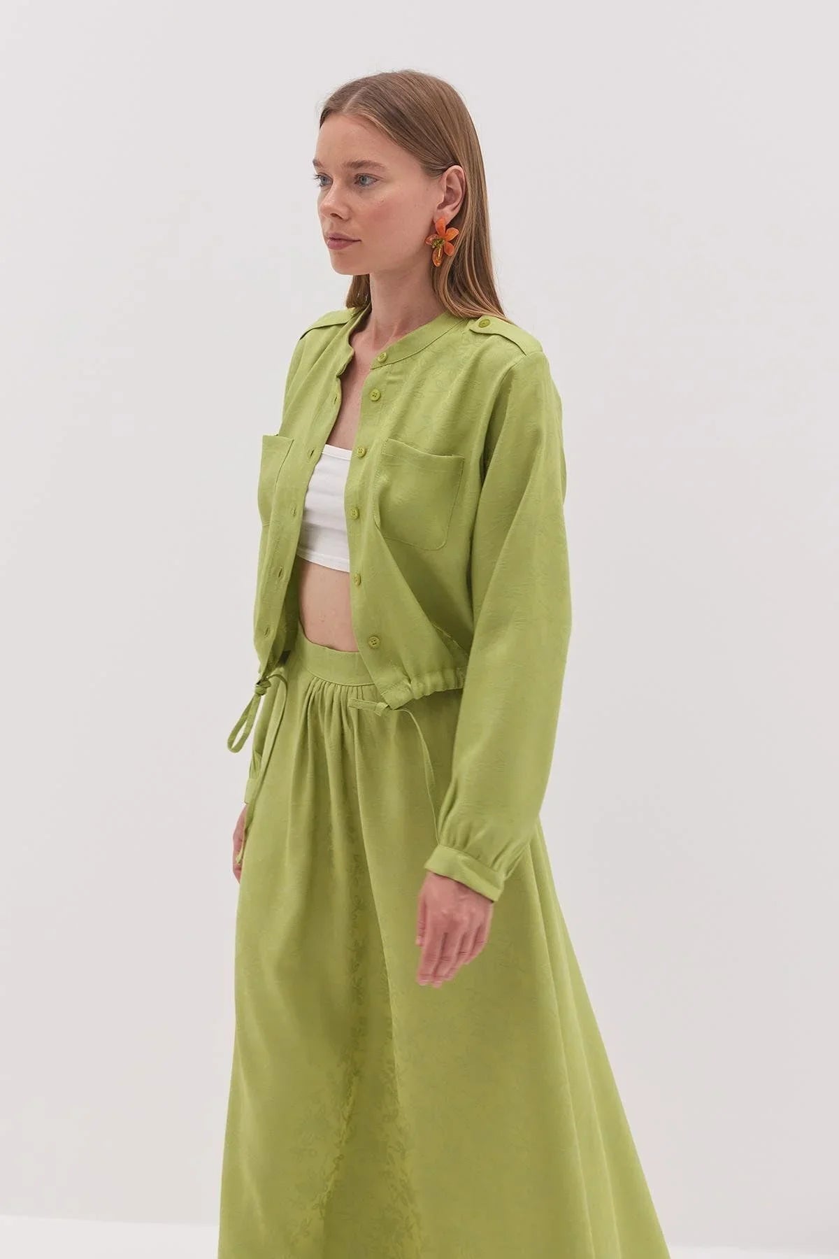Tags: avocado green, fashion, jacquard, women's suit