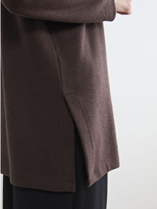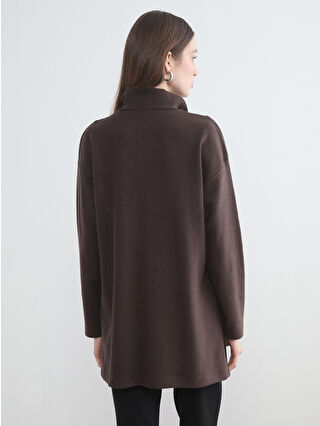 Kahverengi Dik Yaka Kadın Sweatshirt Tunik
