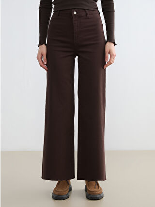 Kahverengi Wideleg Kadın Jean Pantolon