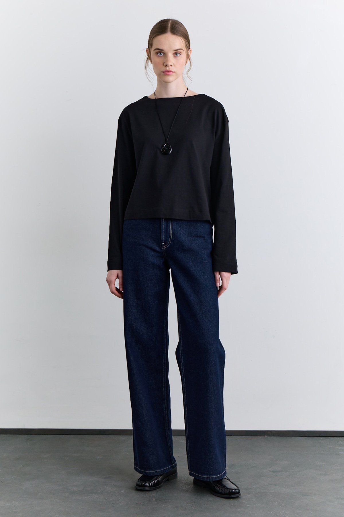 KAYIK YAKA UZUN KOL TSHIRT SİYAH