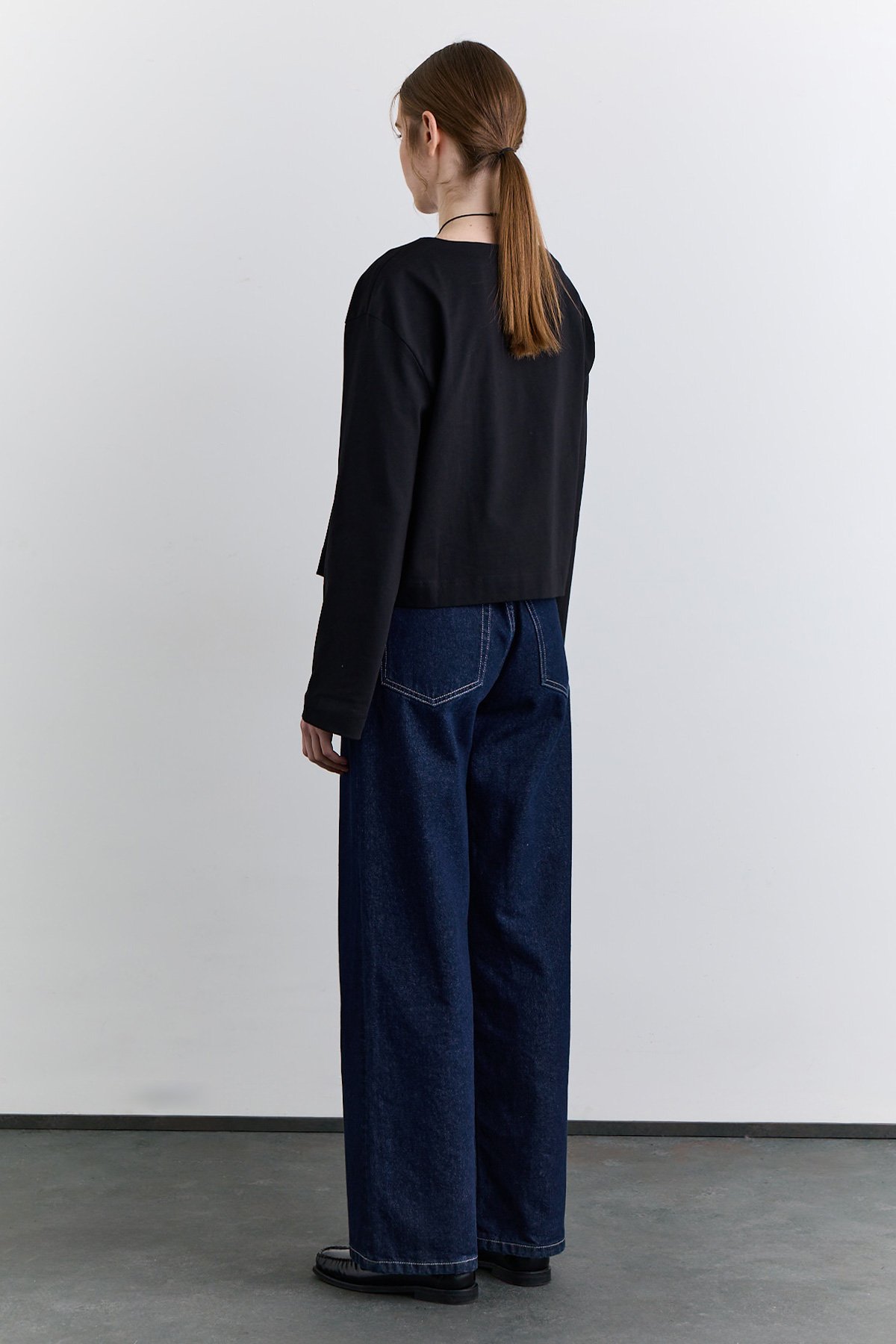 Kayık yaka, uzun kol, crop boy, normal kalıp.