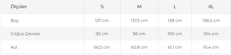 Mankenin Giydiği Beden: S Beden