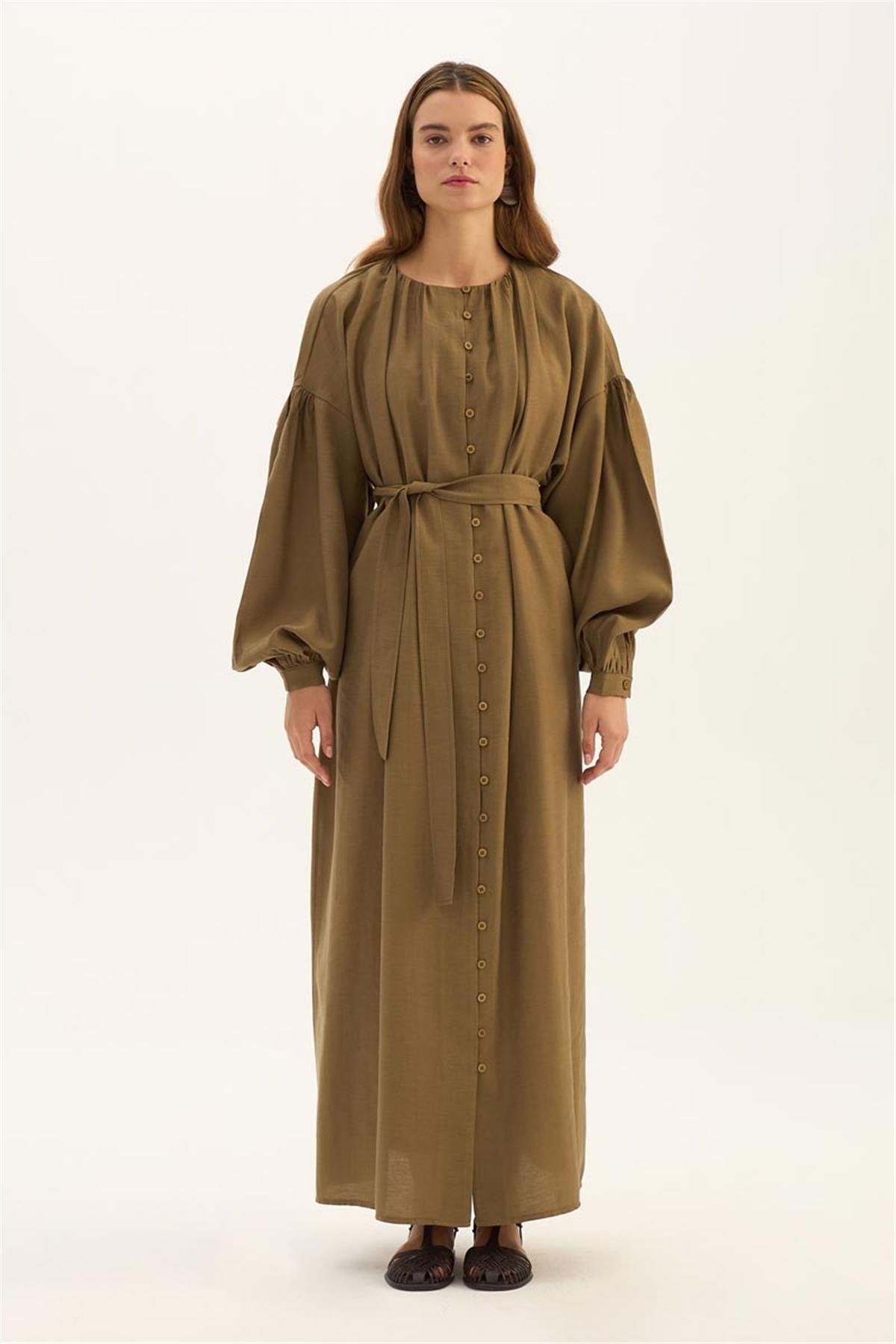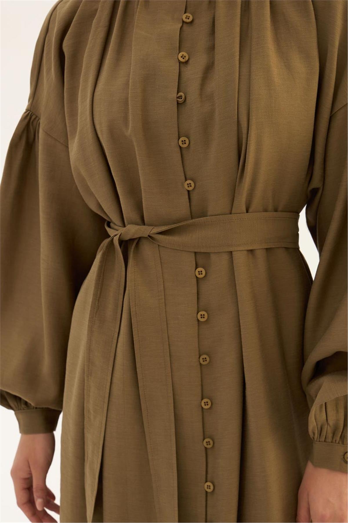Keten Tensel Elbise Haki