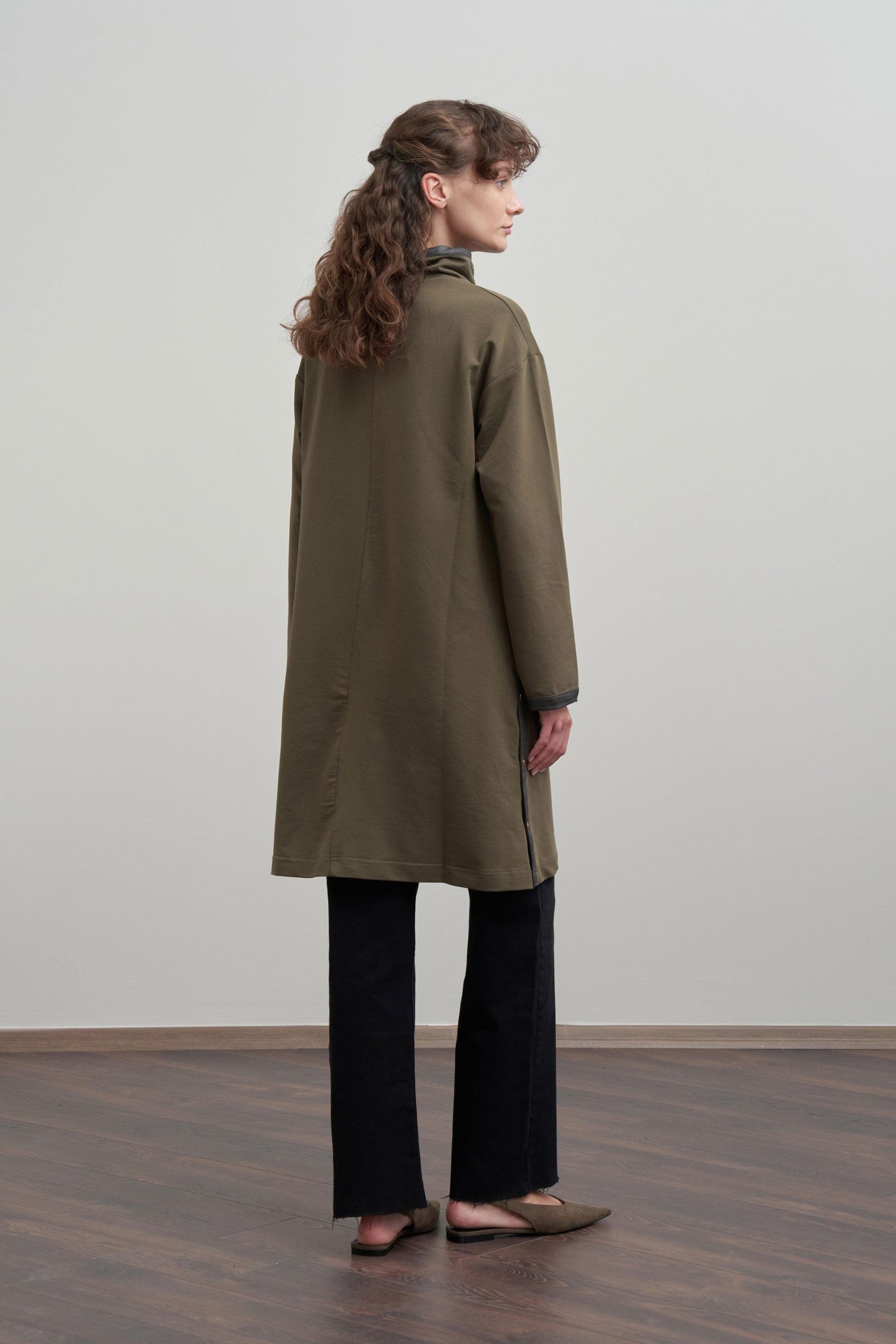 Tags: Allday, cotton, elegant, khaki, leather trim, long, tunic, winter fashion