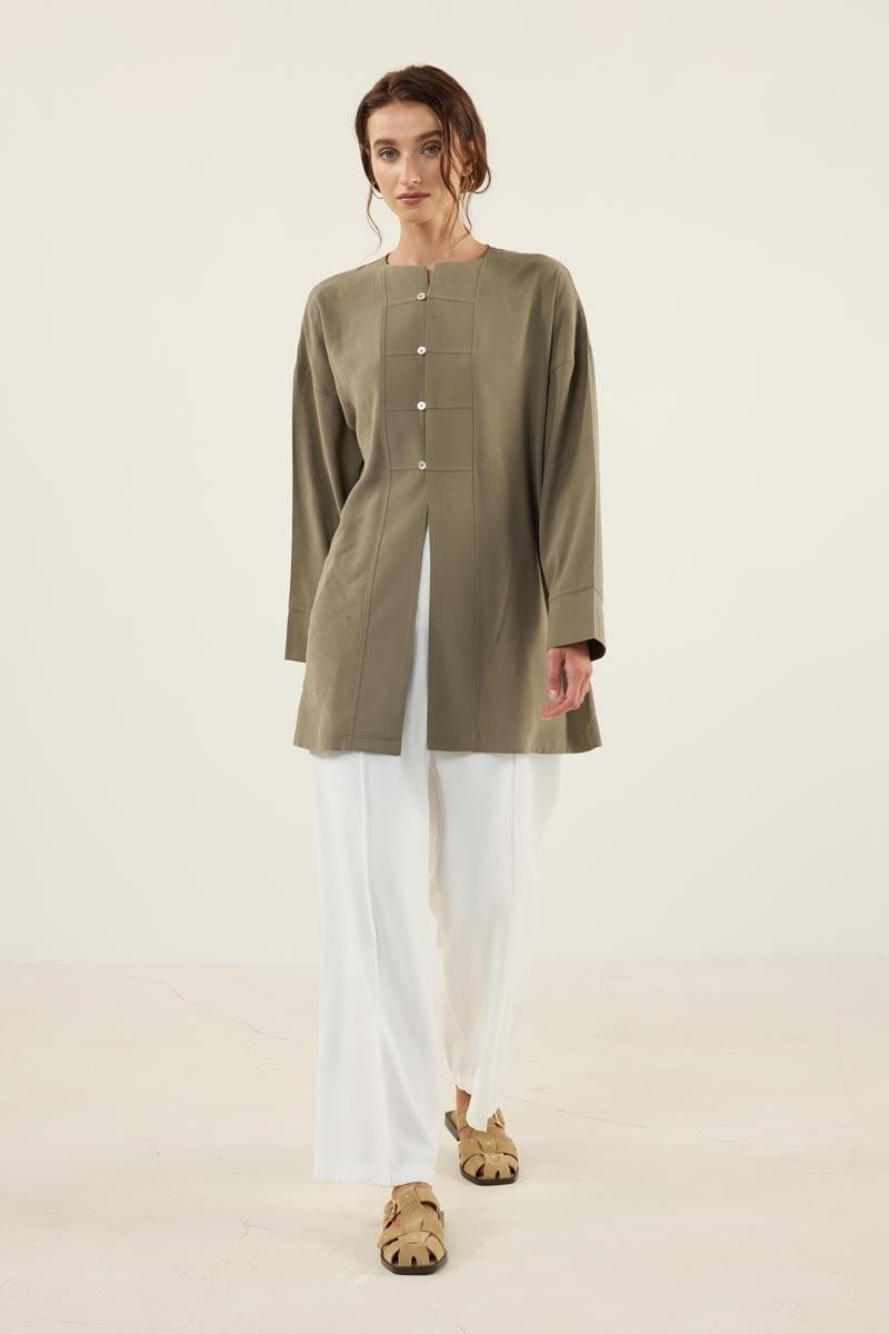 Khaki Modal Tunic with Mother-of-Pearl Buttons