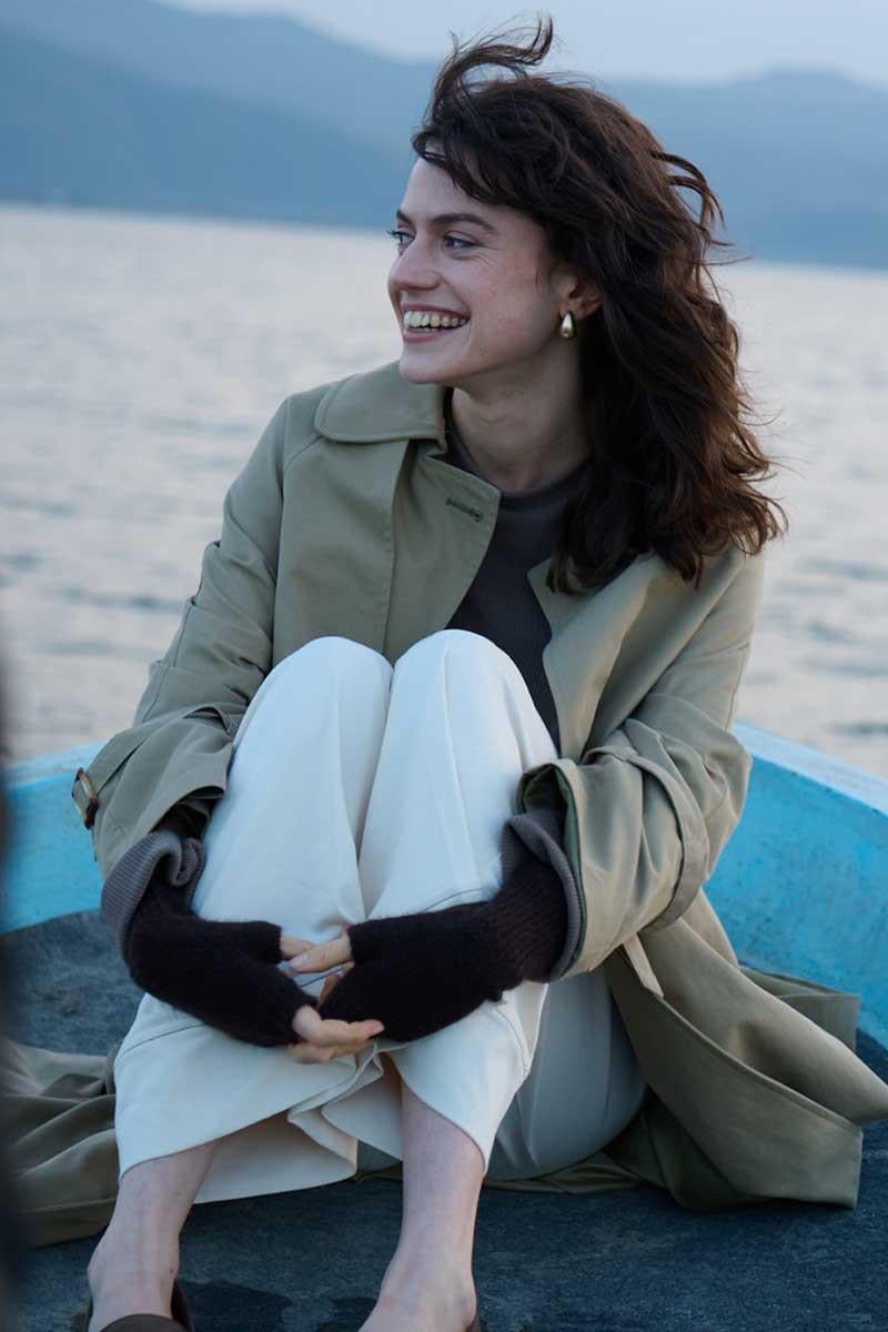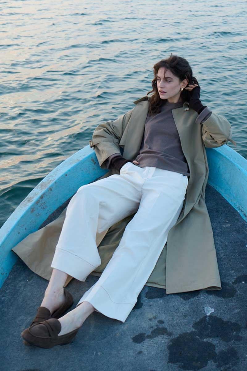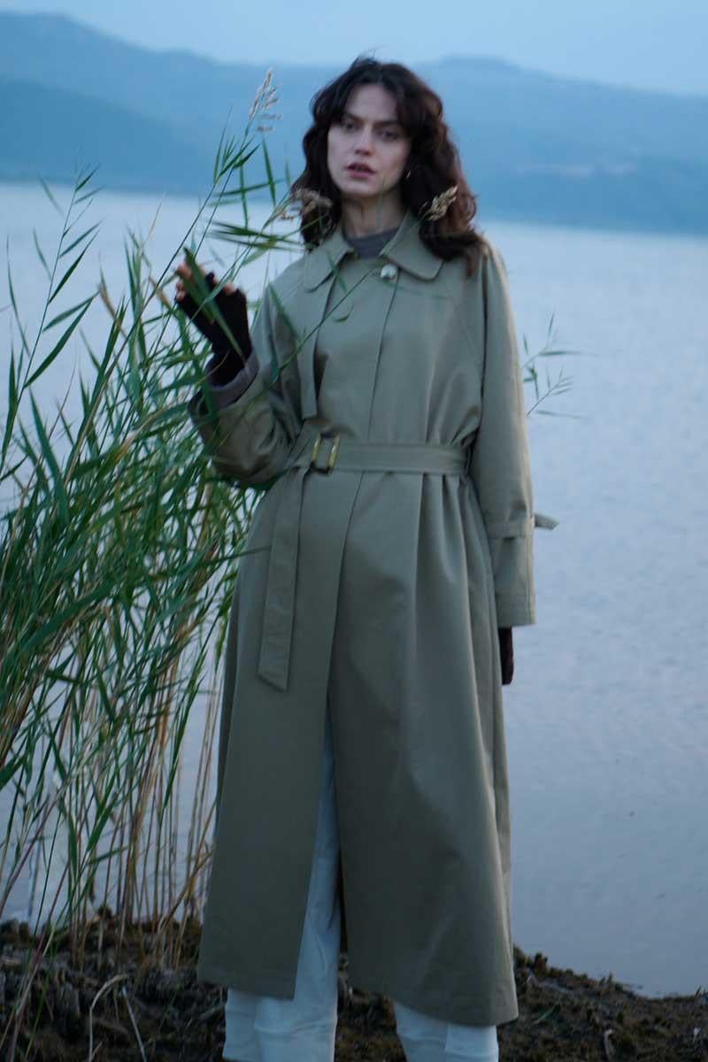 Tags: bone buckle, classic coat, khaki trench coat, removable belt, seasonal fashion, women's outerwear