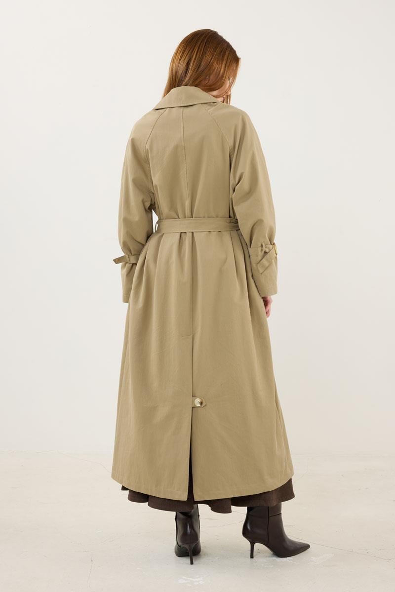 Khaki Trench Coat with Bone Buckle