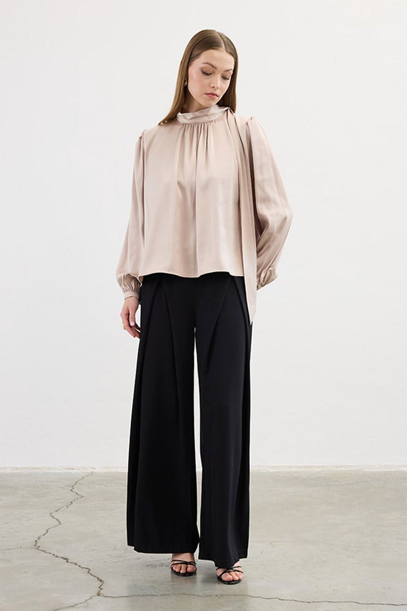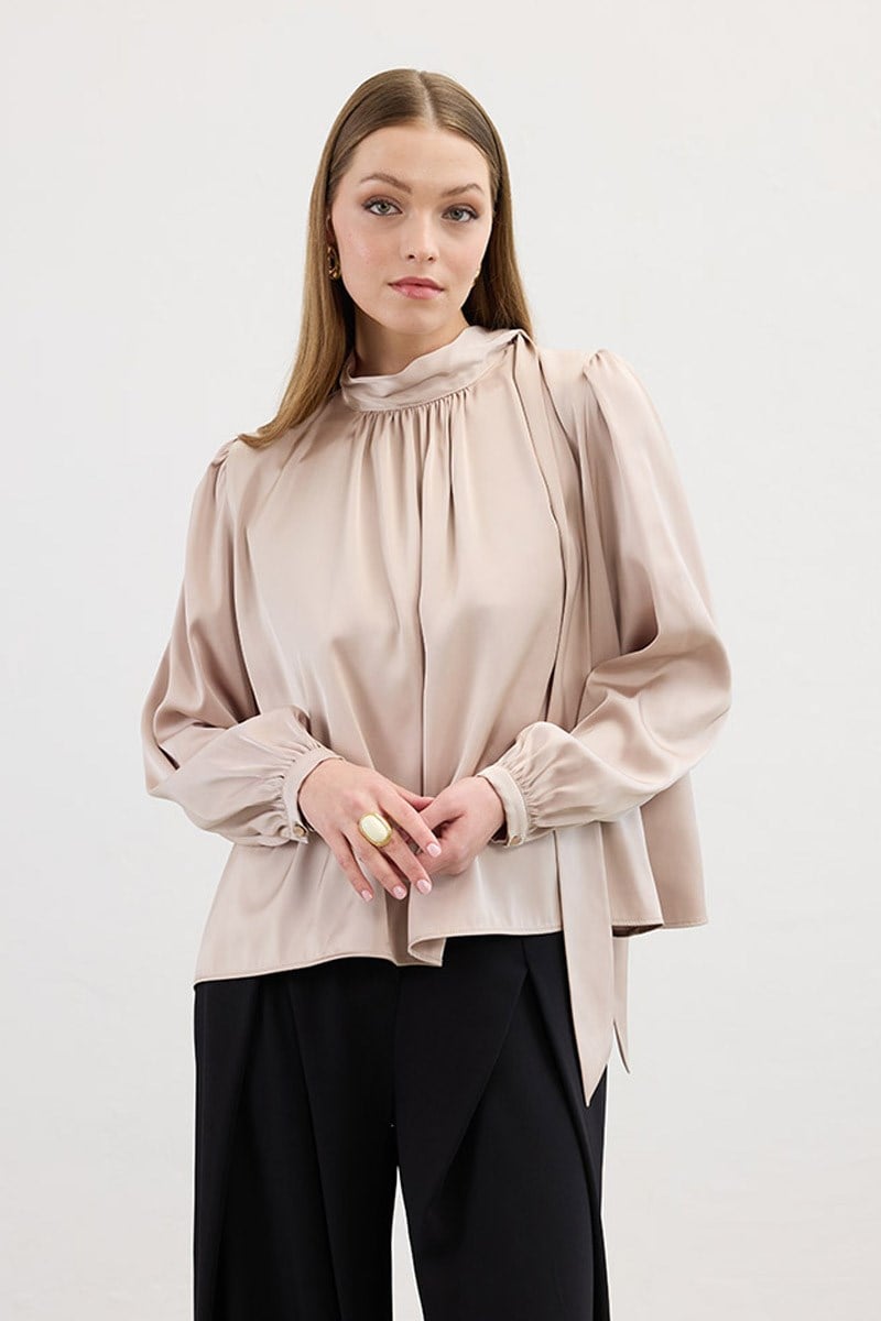 Klasik Saten Bluz Bej