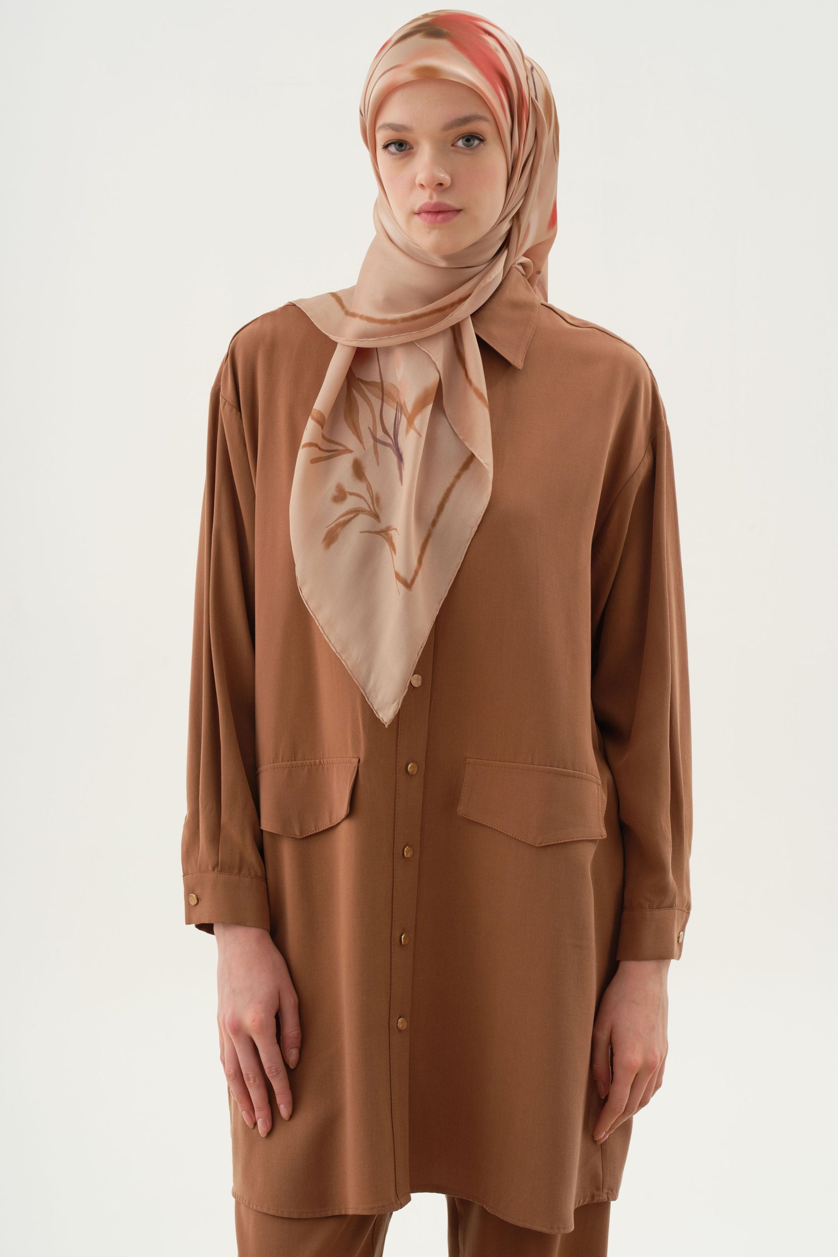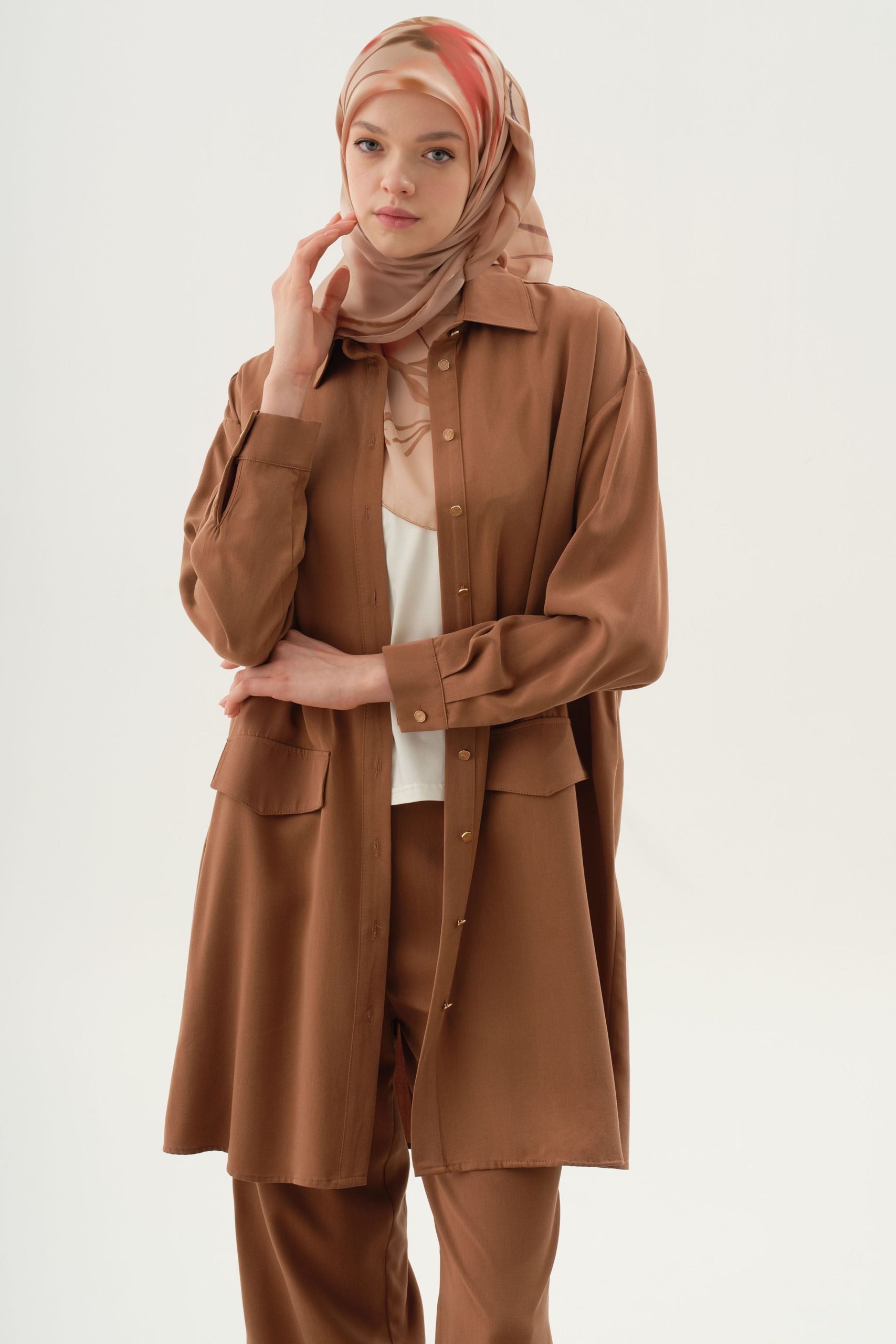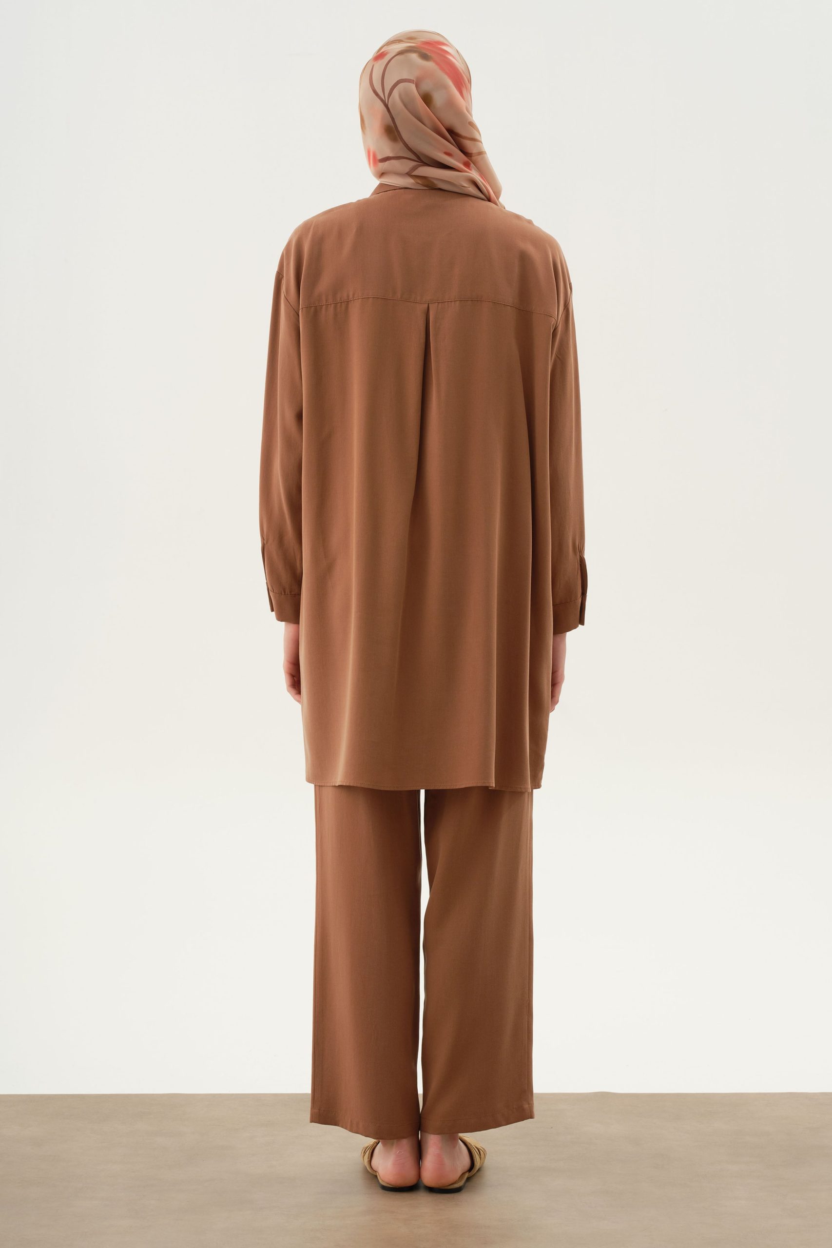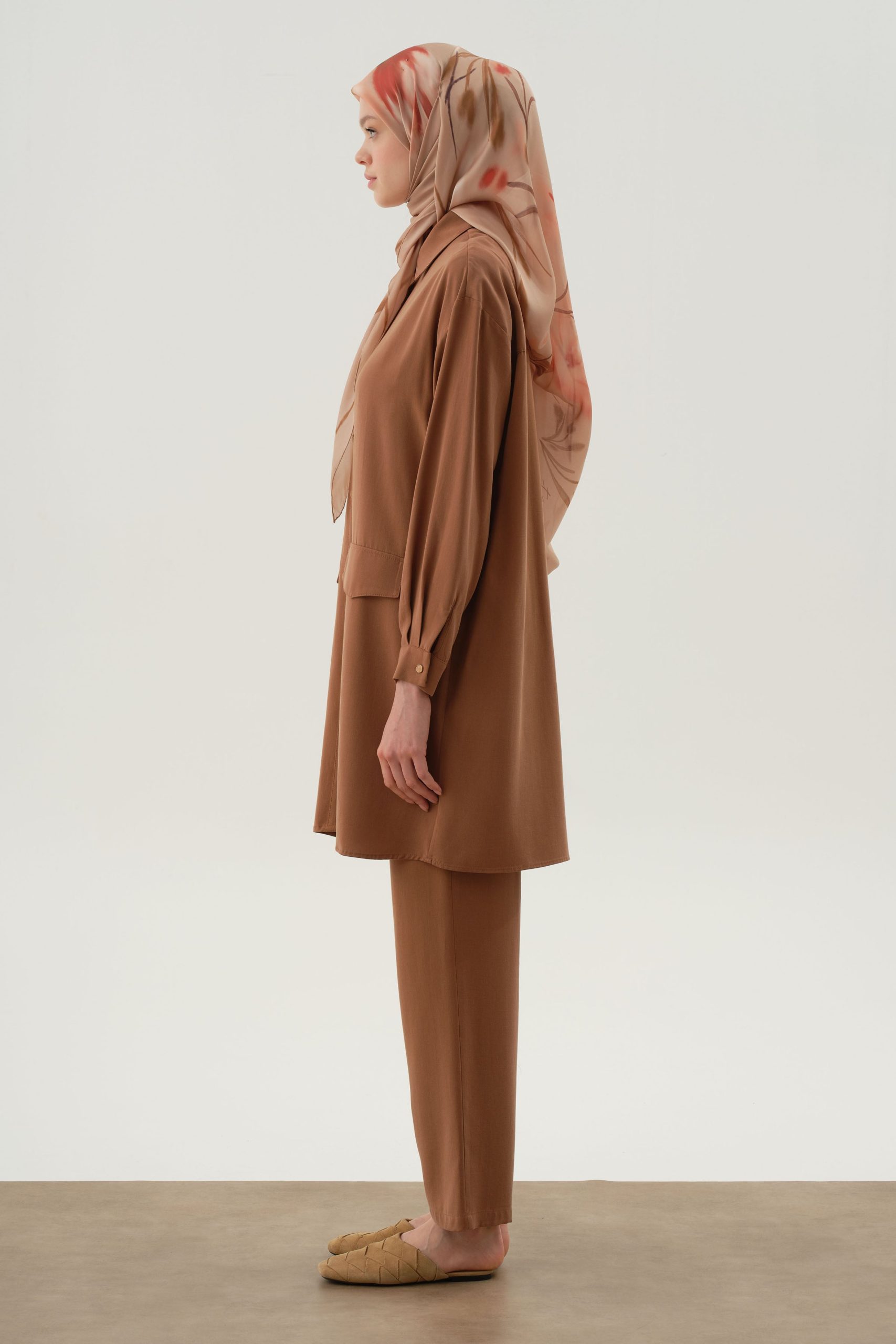 Featuring a soft-textured knitted blouse and a simple long tunic, this set is the ideal reflection of comfortable elegance. Its harmonious design offers an effortlessly chic look. Perfect for those who want to be both comfortable and stylish in everyday wear.