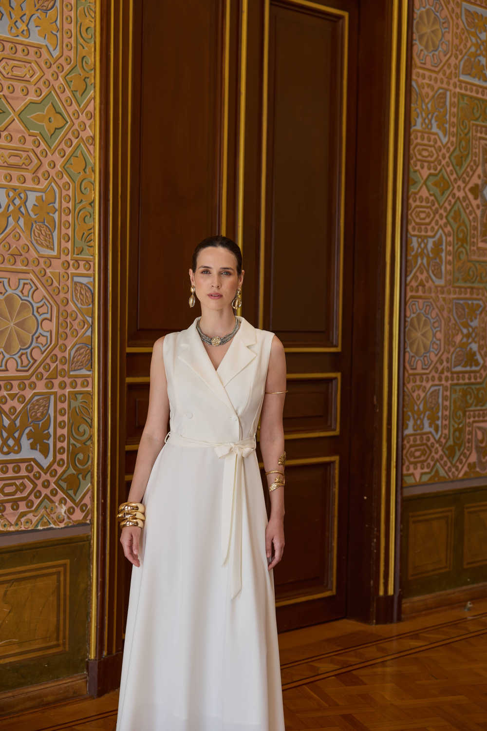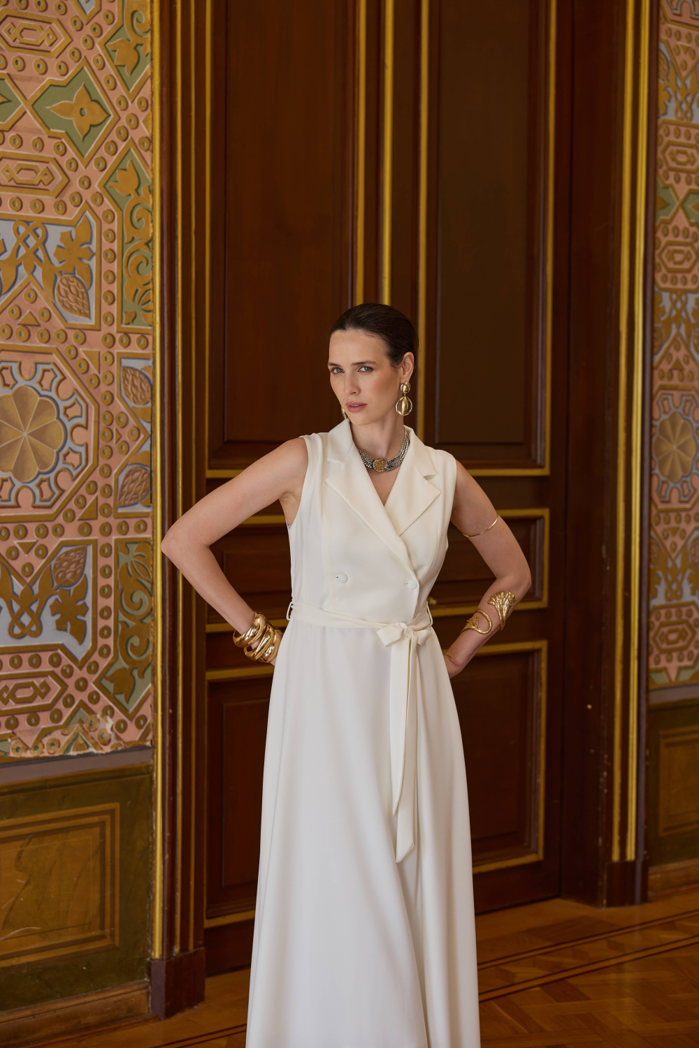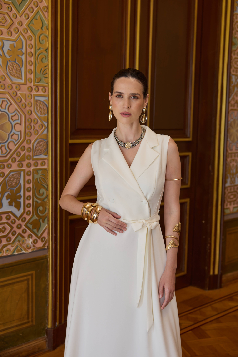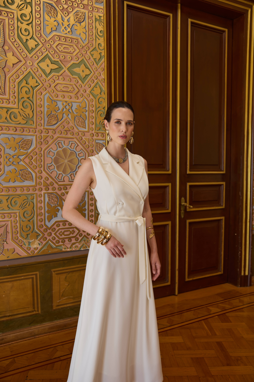 Ivory Asimetrik Yaka Detay Triko Elbise – Krem