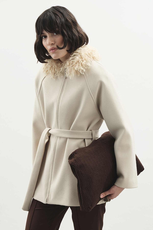 KÜRK YAKA BEJ KABAN ÖZELLİKLERİ Kürk yakalı, fermuar kapamalı, cep detaylı, kemer köprülü, kendi kumaşından kuşaklı, normal kalıp, astarlı kürk yaka kaban. İÇERİĞİ VE YIKANMASI %76 Pes %24 Viscon Kuru temizleme önerilir. El ile ölçümlerde 2-3 cm farklılık gösterebilir. Manken Bedeni: S-M Manken Ölçüsü: Boy: 1.77 cm, Göğüs: 83 cm, Bel: 61 cm, Basen: 91 cm