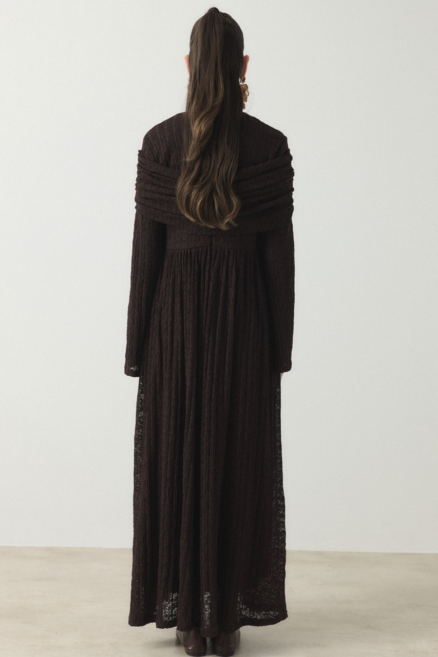 Elegant lace tulle dress featuring a delicate shoulder flounce design. This coffee-colored dress combines sophistication with romantic detailing, perfect for special occasions or evening wear.