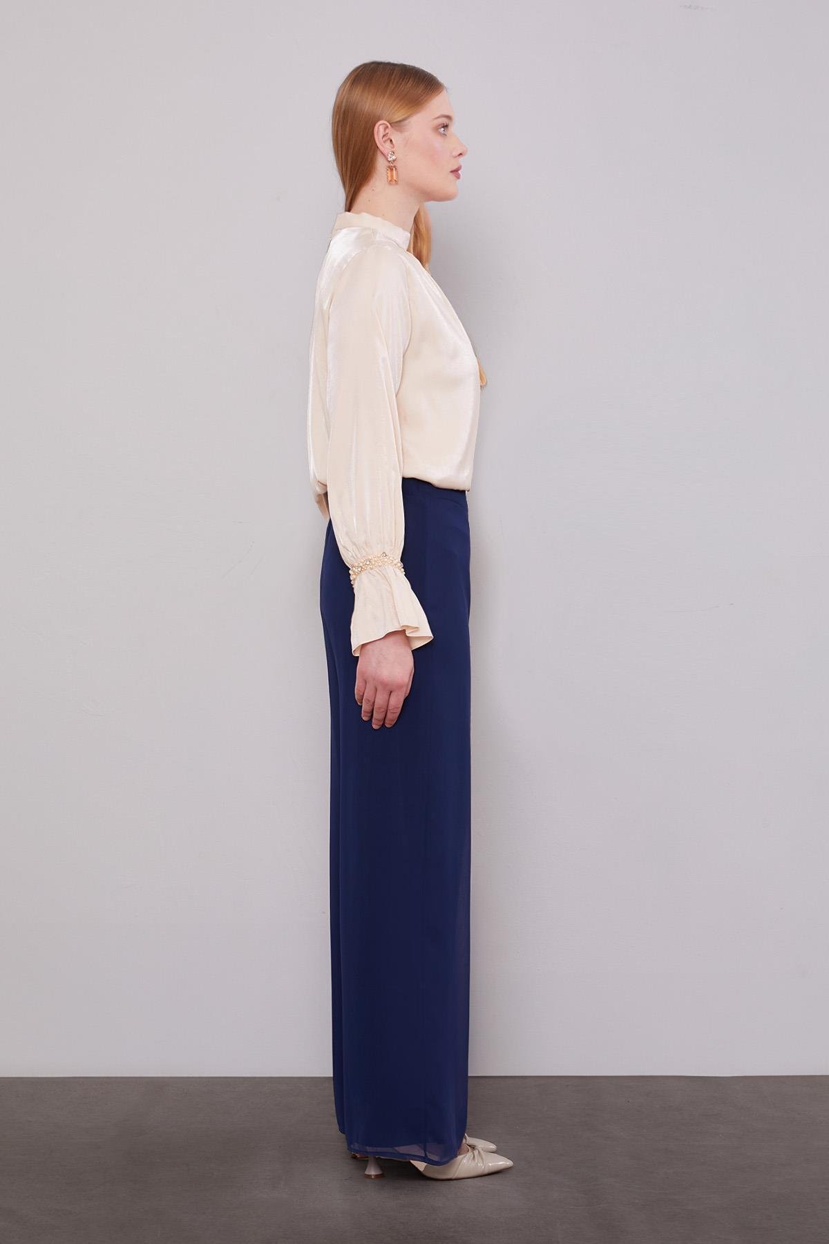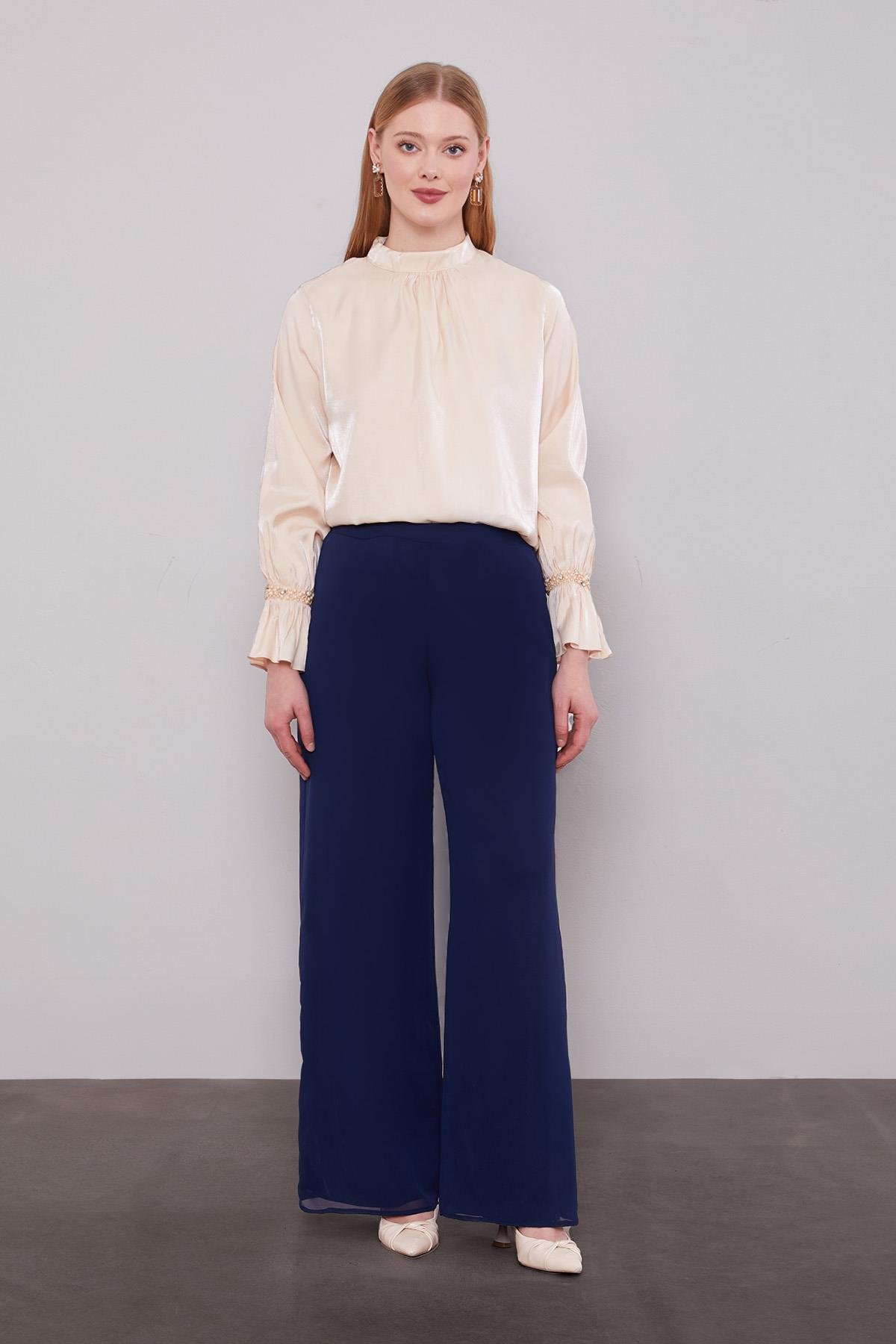 Be the first to review “Lacivert Bol Paça Şifon Pantolon”