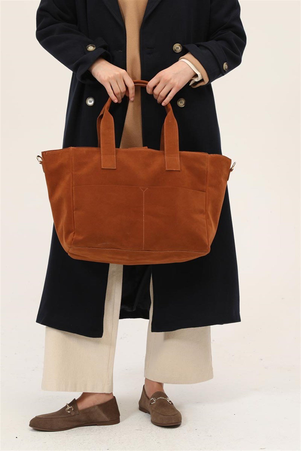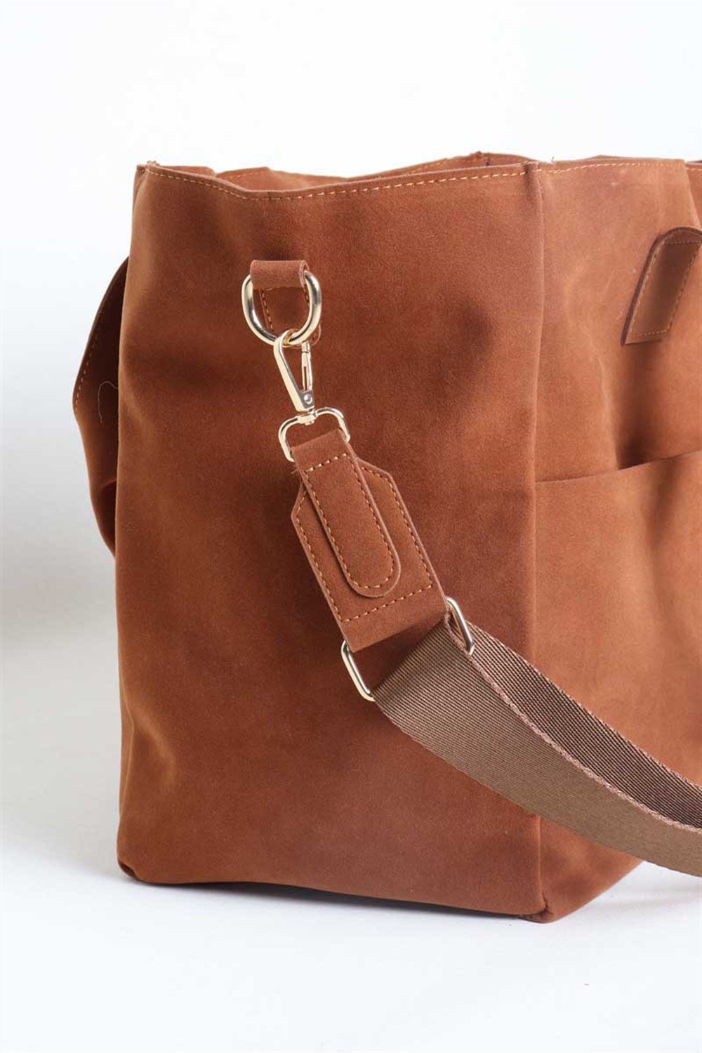 Tags: fashion accessory, removable handle, suede handbag, tan bag, winter collection