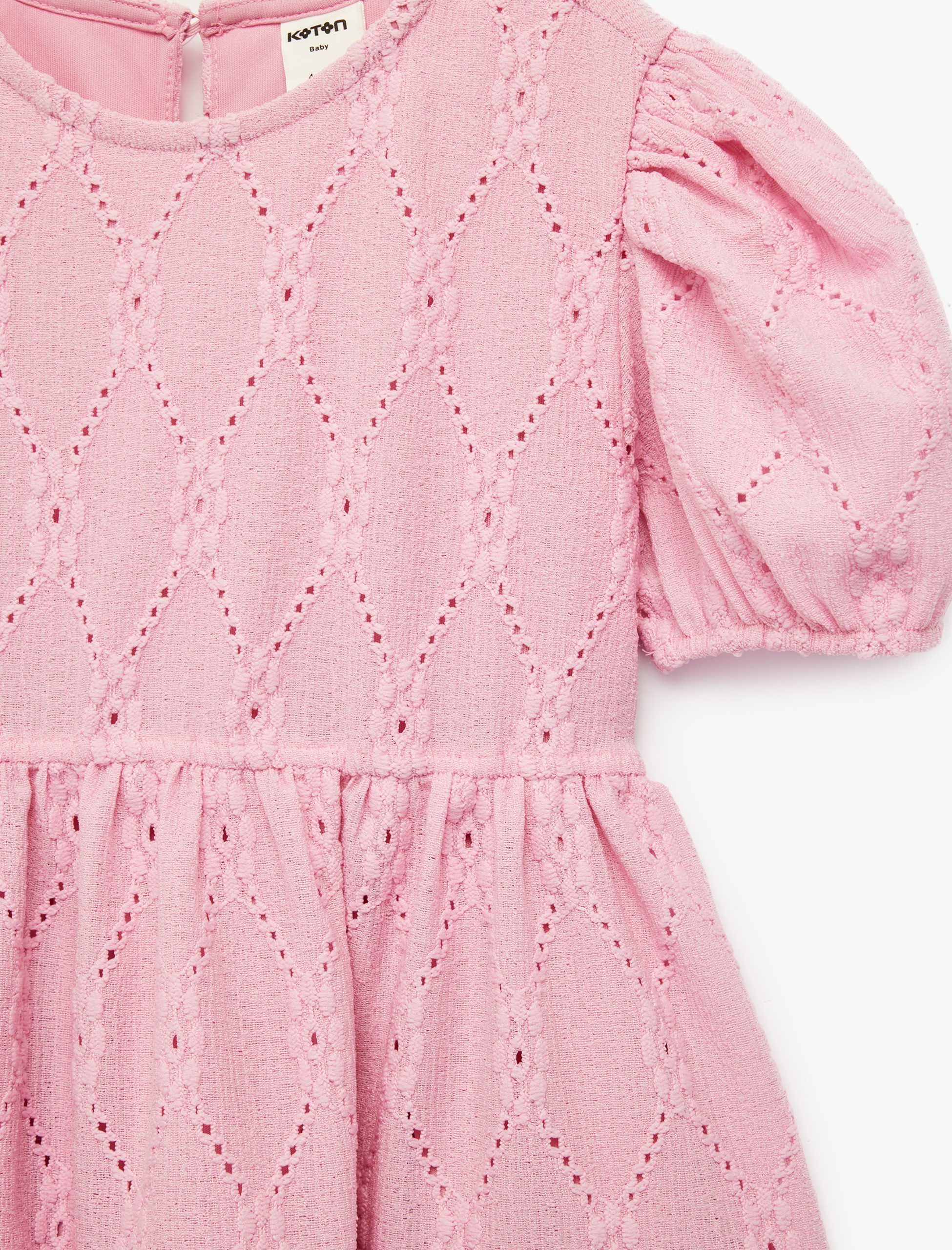 This dress, featuring a layered structure and ruffled details, is a perfect addition to any baby’s wardrobe with its balloon sleeve design! Offering freedom of movement with its above-knee length, the bicycle neckline detail adds a modern touch. With its lining providing extra comfort, the dress presents an energetic and adorable style through its layered design.