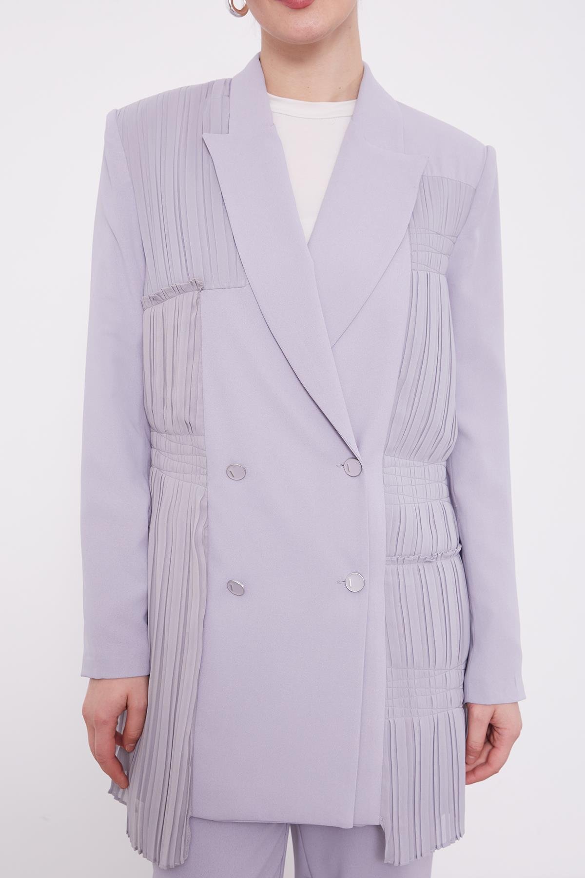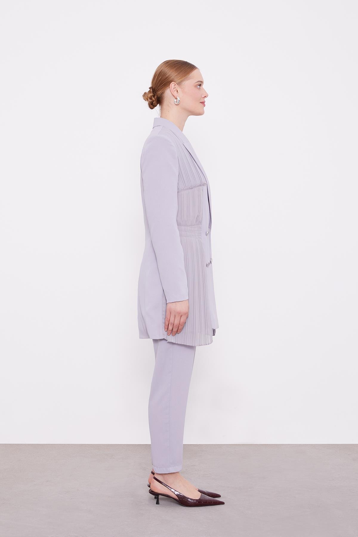 Light Gray Pleated Chiffon Jacket Set