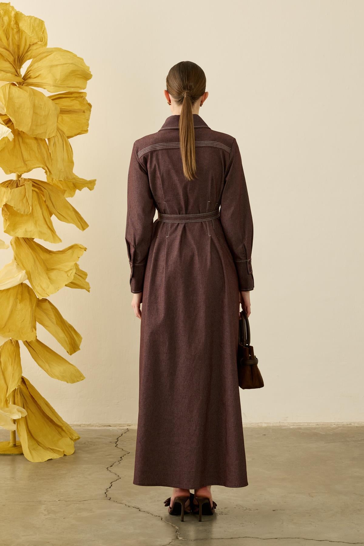 Tags: brown dress, contrast stitching, cotton dress, dress, fashion dress
