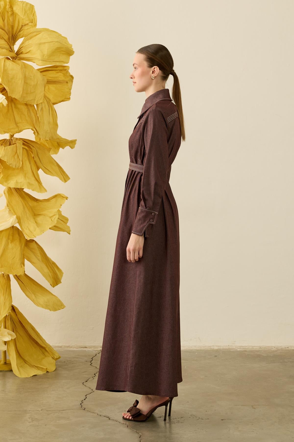 Beli Tünelli Elbise – Kahve