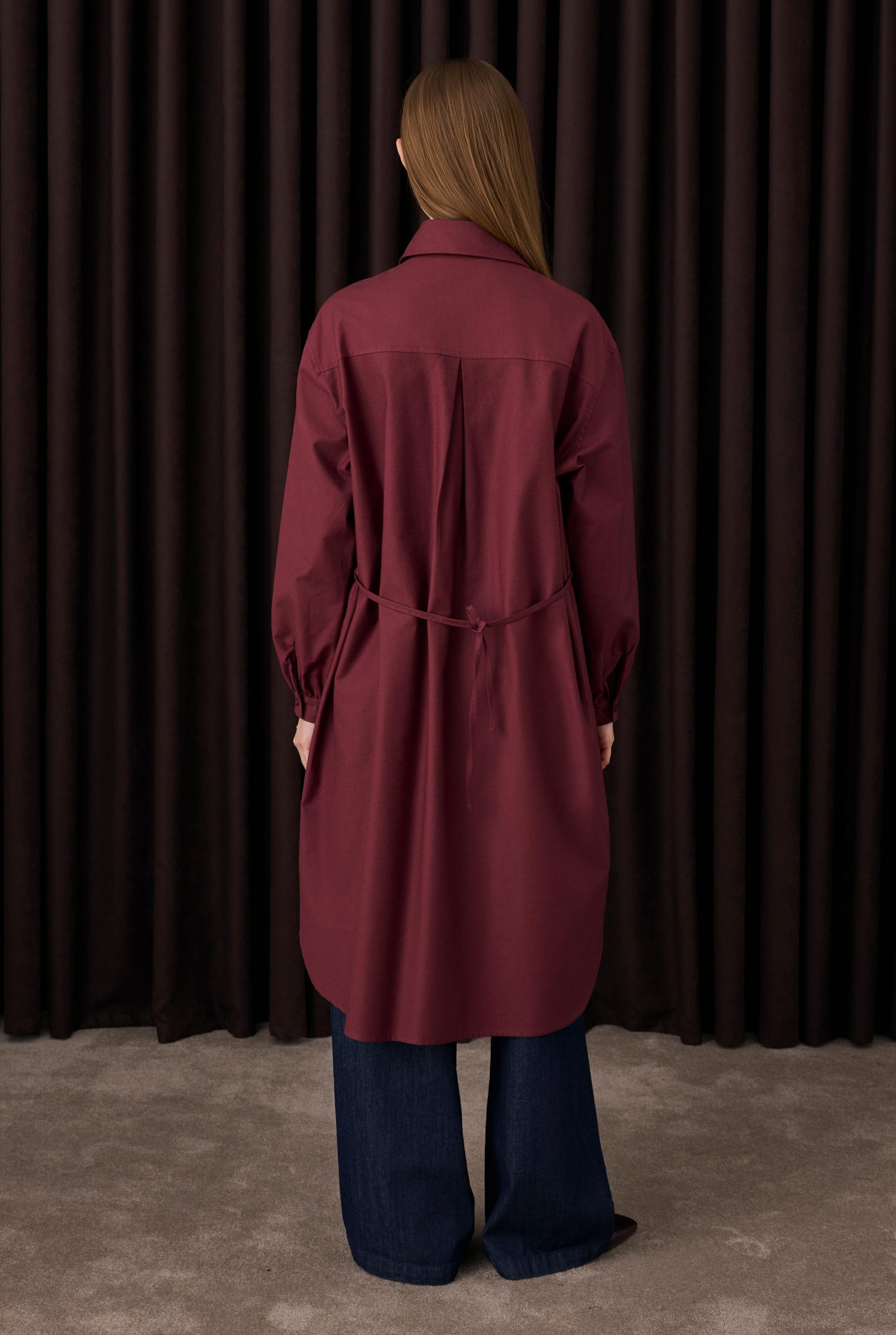 Long Gather Detail Burgundy Shirt