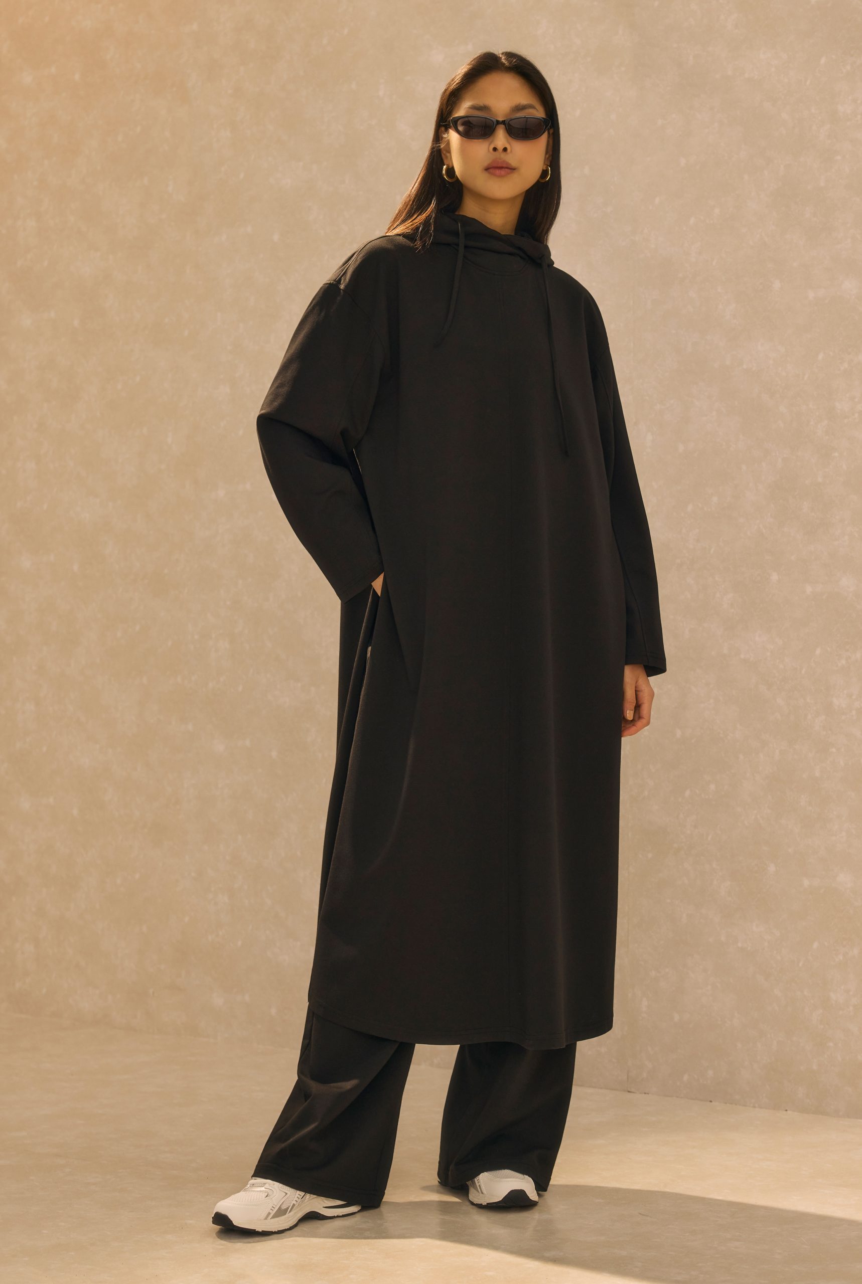 Long Hooded Sweatshirt Black