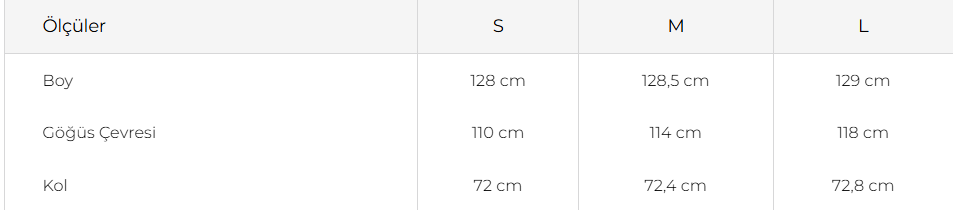 Length 128 cm 128.5 cm 129 cm