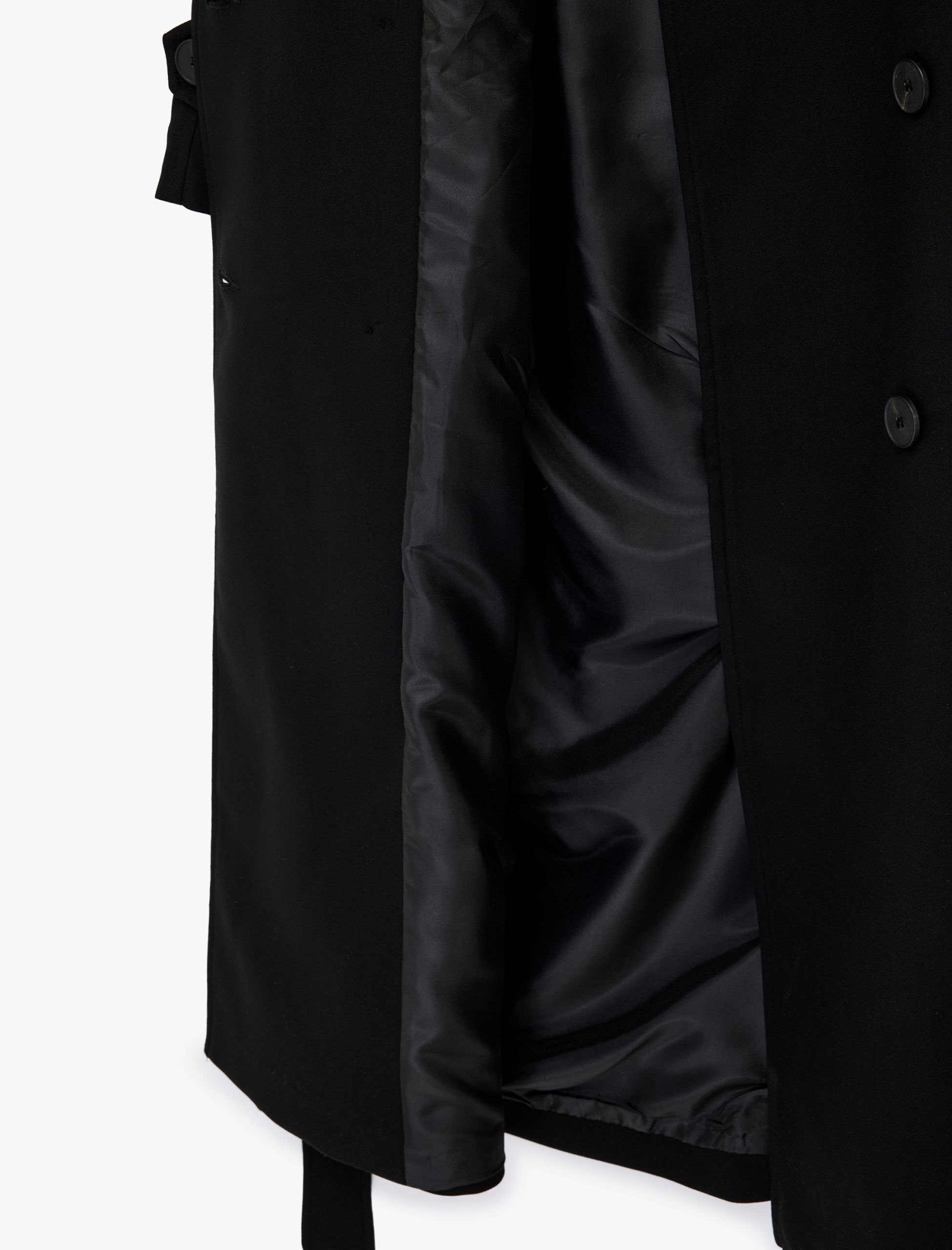 This trench coat guarantees elegance with its refined and modern design. Its long length provides extra protection in cold weather while the wrap closure detail offers a stylish appearance. The belted design gracefully cinches your waist to create a feminine silhouette. The buttoned sleeve detail and sturdy stitching add a striking touch to outerwear. Made from durable and comfortable gabardine fabric, this trench coat becomes an essential piece for city life and travel.