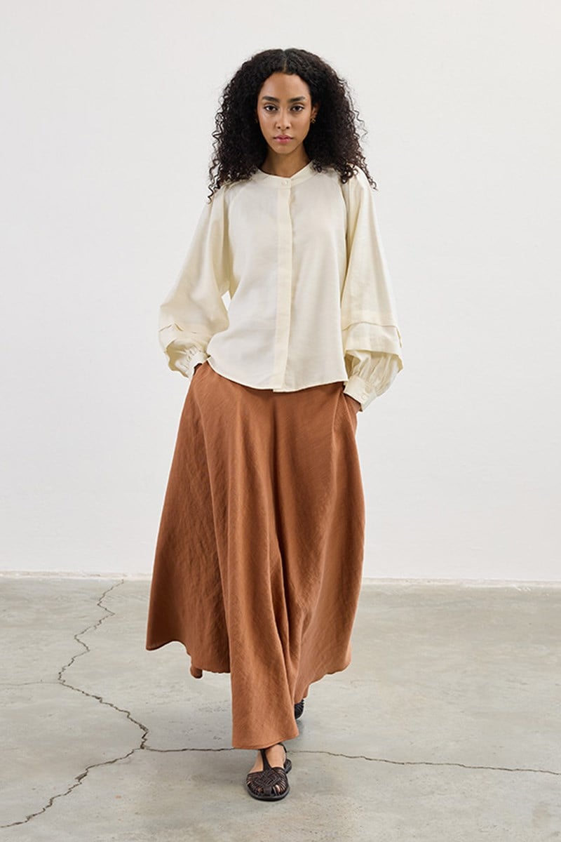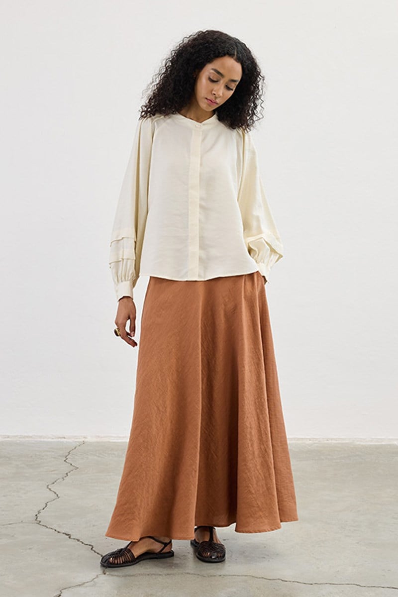 Mink-Sleeve Gathered Stylish Buttoned Shirt