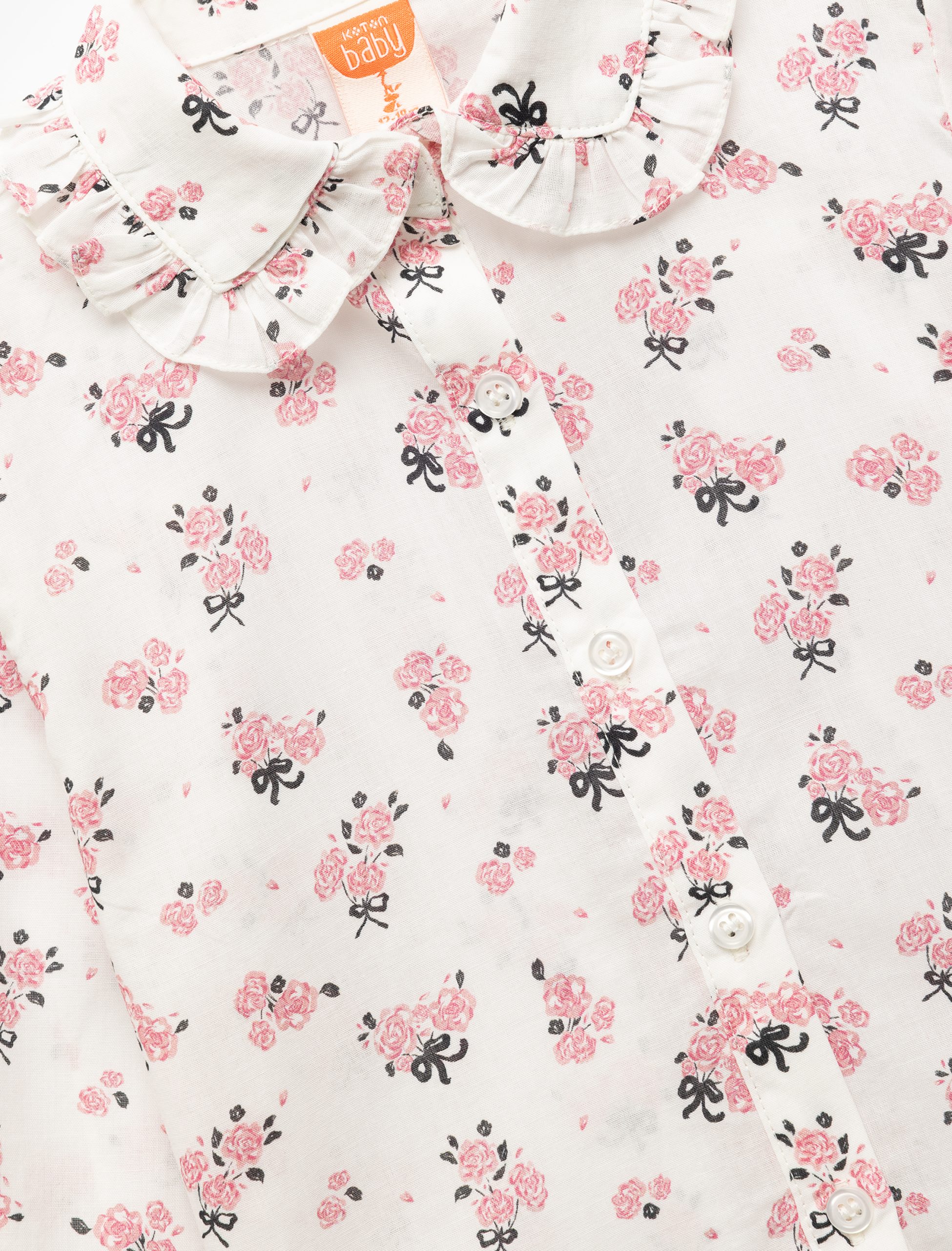 This frill-detailed blouse stands out with its colorful, cheerful design and floral printed accents. Made from cotton fabric, it’s suitable for both everyday wear and special occasions. It features a cotton construction that protects babies’ delicate skin and offers a comfortable cut for freedom of movement. The elegant Peter Pan collar detail and frilled design enhance little ones’ adorable style. Your baby will be safe in this garment! Our products are tested against chemicals and manufactured in compliance with all safety regulations. Our products contain no harmful dyes or heavy metals, no small or sharp parts that could be dangerous if swallowed, and no cords or ties.