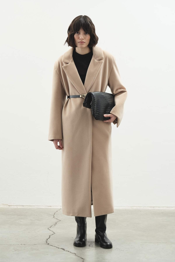 Tags: cashmere, elegant jacket, long coat, stone coat, winter coat, women's outerwear, wrap-over