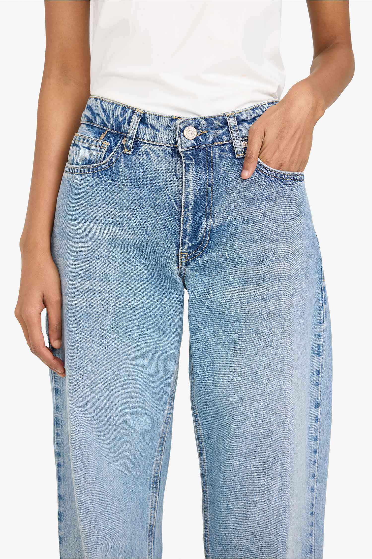 These low-waist long washed jeans pants stand out with their modern cut and washed appearance. The long leg design creates a lengthening effect while offering comfortable wear. They easily complement both casual and urban styles.