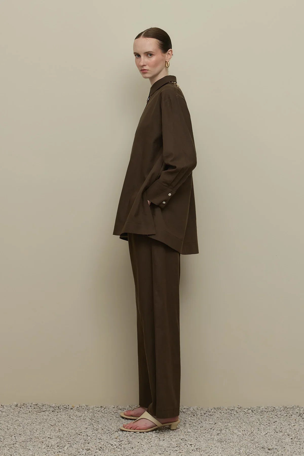 Lyocell Linen Shirt Set in Brown