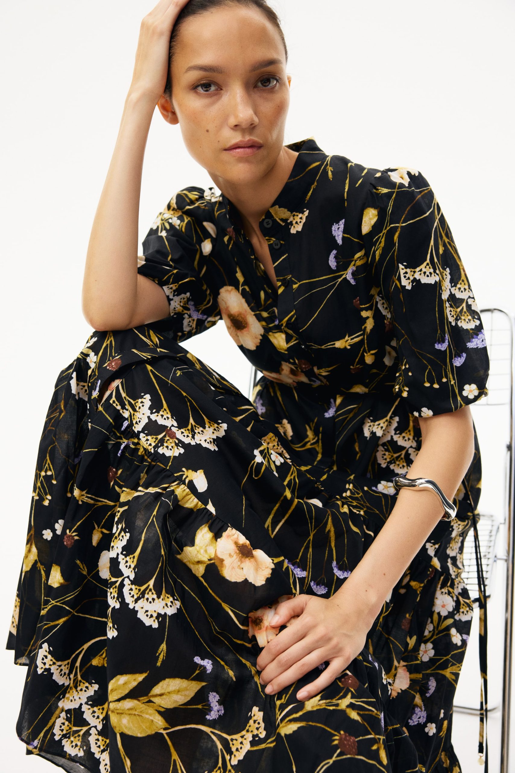 Tags: balloon sleeves, cotton, dress, floral, mama, shirt dress, tiered
