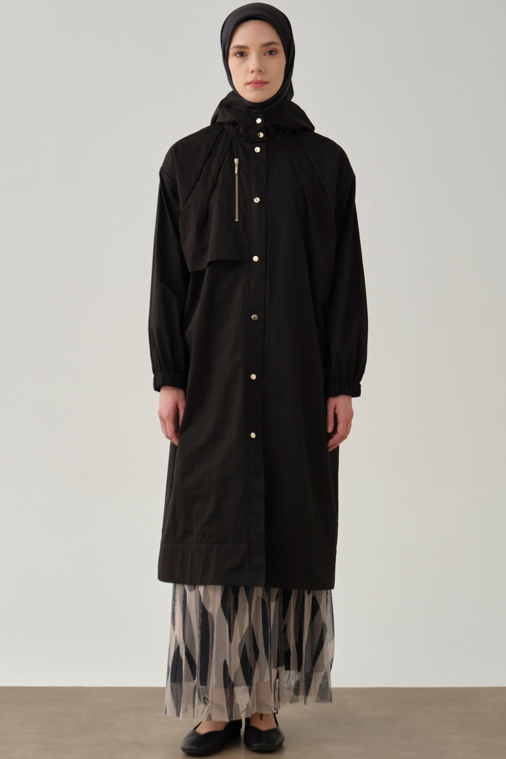 Mesh-Lined Raincoat – Black
