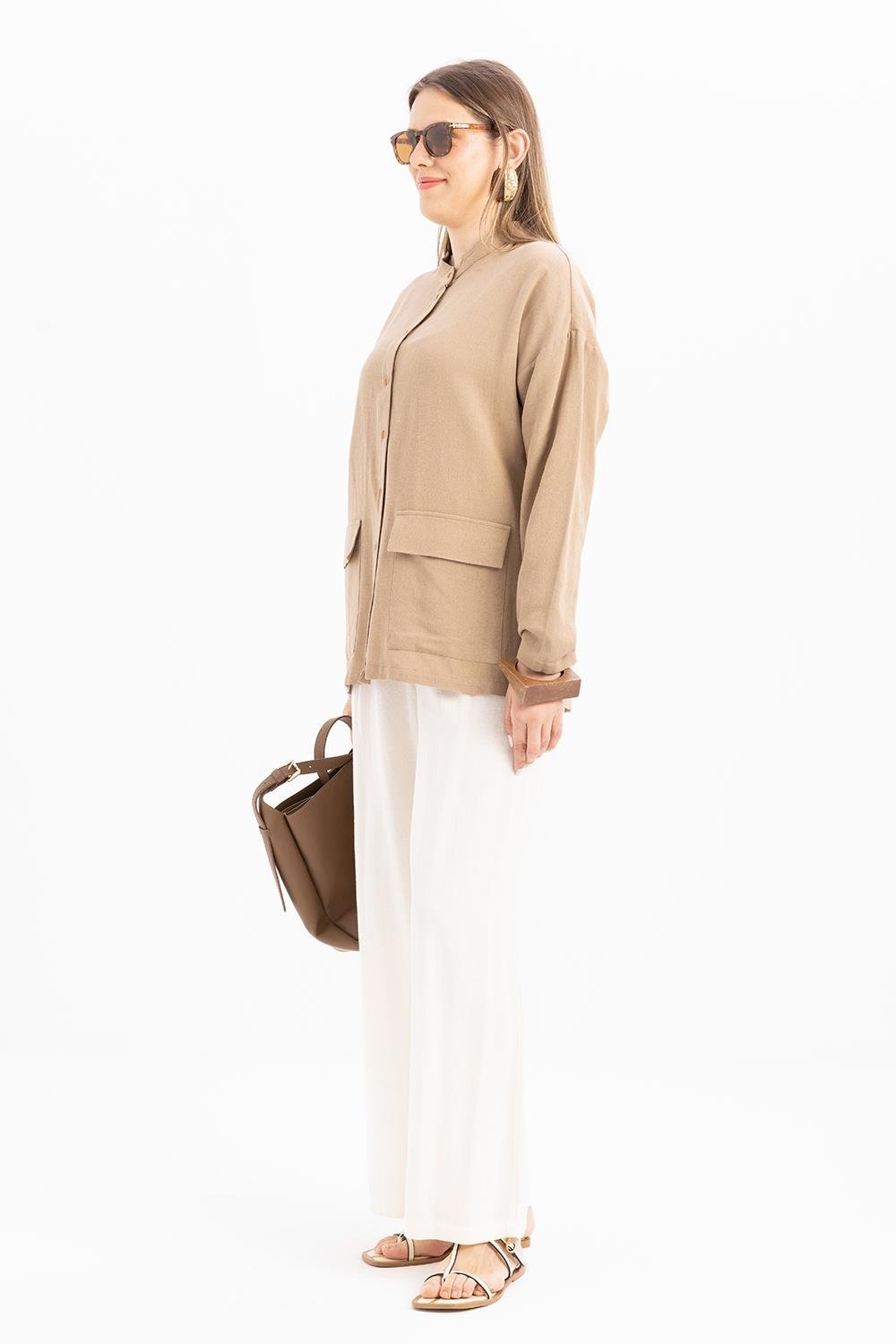 Capture a modern and comfortable style with the Mink-Large Pocket Linen Shirt. Discover other models in ALLDAY’s Shirt Tunic category. Explore now to complete your outfit with the Mink-Large Pocket Linen Shirt!