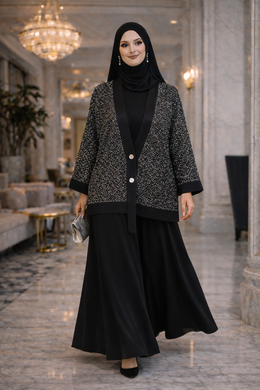 Pearl Abaya Set in Black