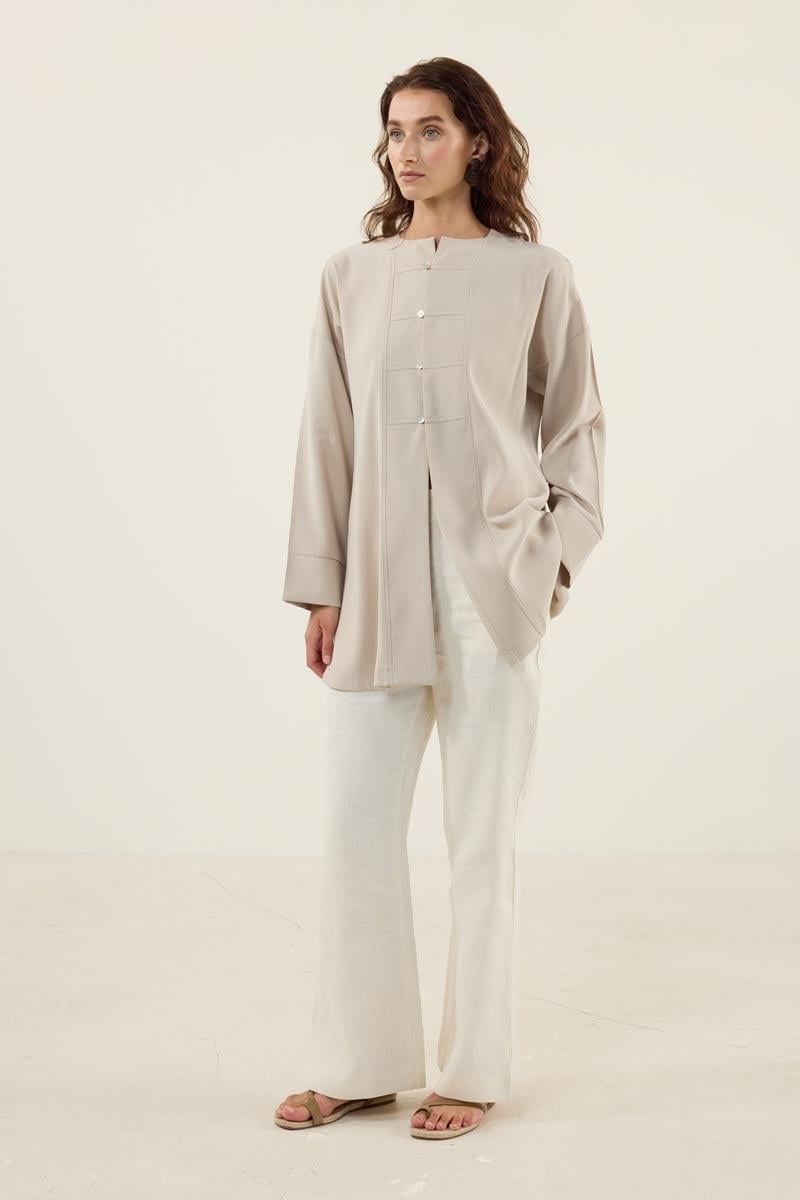 Mother-of-Pearl Buttoned Modal Tunic Top