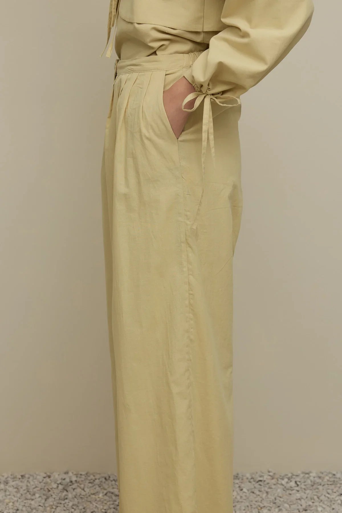 Tags: cotton voile, light yellow, palazzo pants, pleated trousers, summer fashion, women's trousers