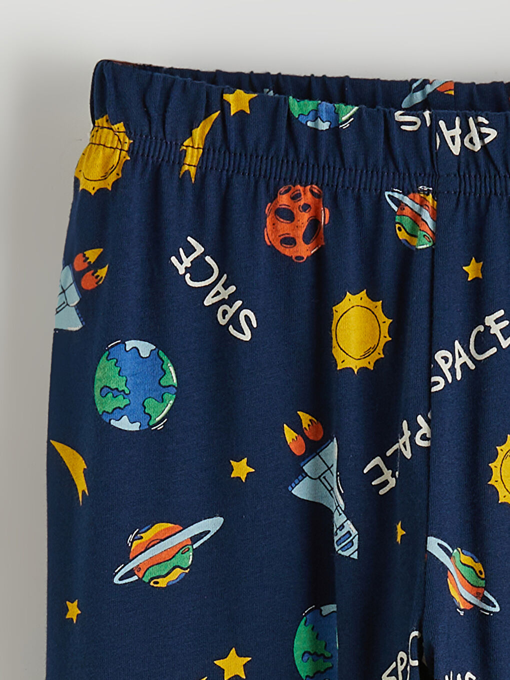 Navy Blue Bike Neck Print Boys’ Pajama Set