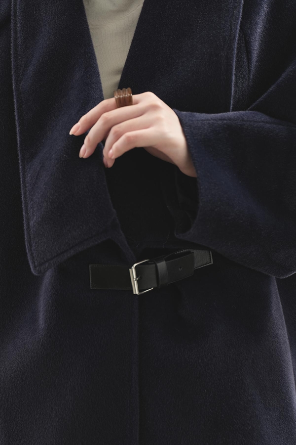 Tags: belt buckle, cashmere coat, navy blue, outerwear, premium, winter coat