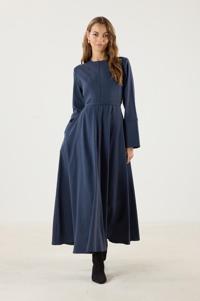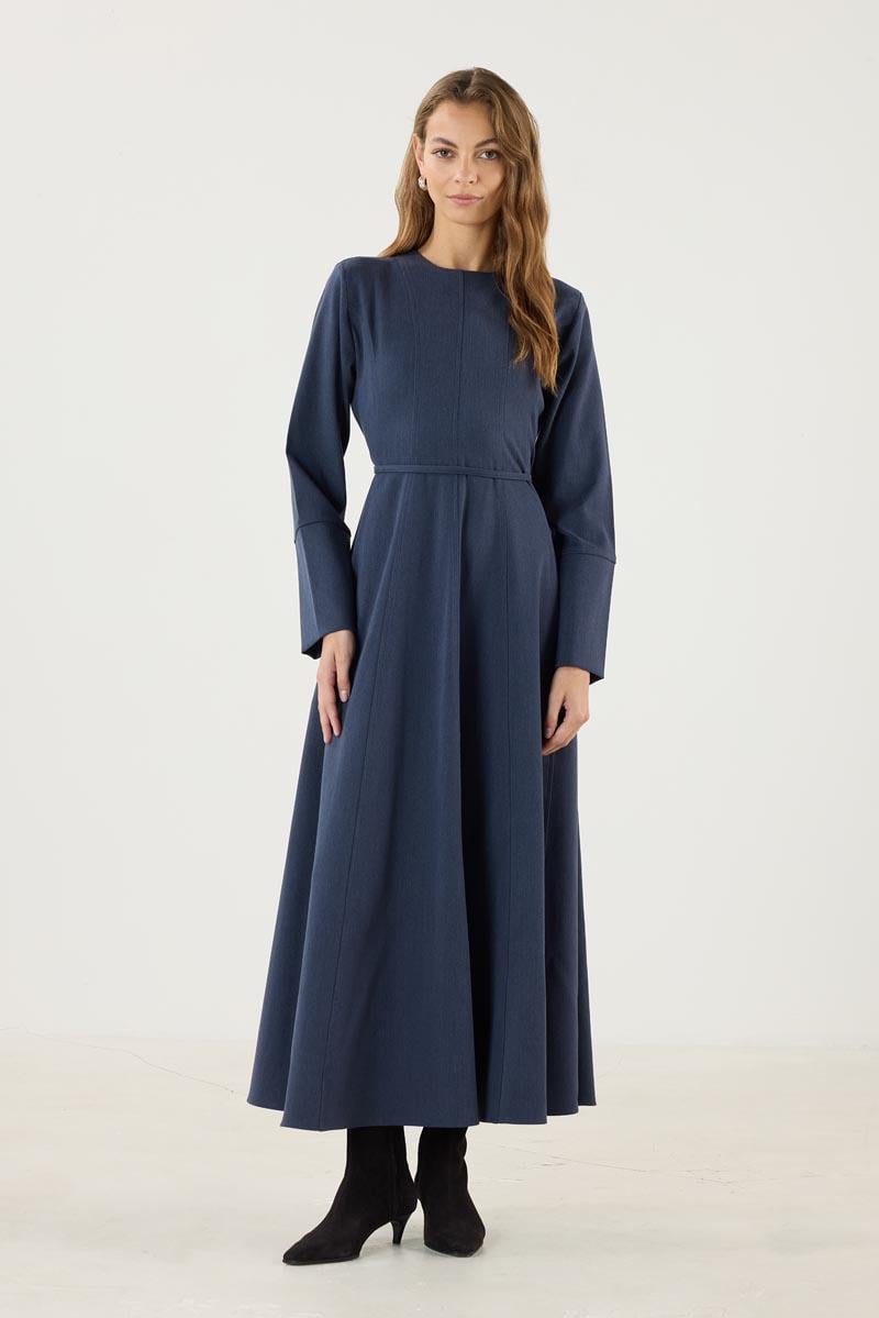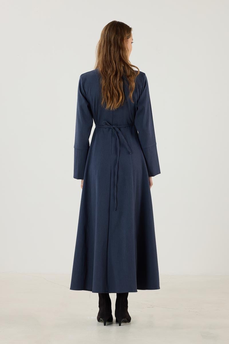 Navy Blue Flared Dress with Wide Cuffs