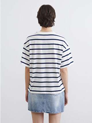XSIDE Navy Blue New Jersey Print Oversize Women’s T-Shirt with exclusive discounts, installment options, and cash-on-delivery advantages at LCW! Shop online now and have the product delivered to your door! – S6HC62Z8-LGS