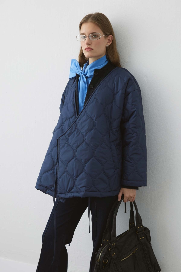 Be the first to review “Navy Blue Quilted Belted Coat” Cancel reply