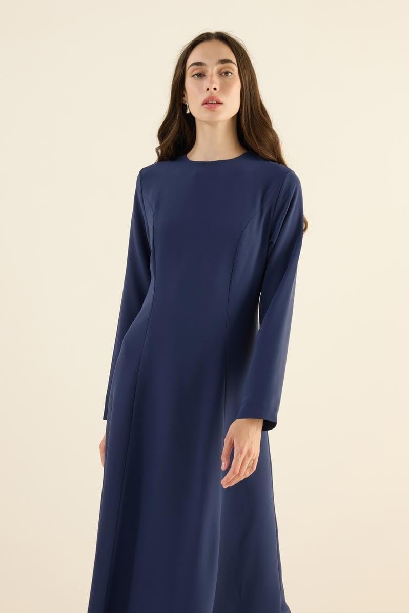 The Navy Blue Scoop Neck Evening Dress, with its clean lines and elegant silhouette, is destined to become an essential piece for special occasions. Made from 100% polyester fabric, its draped and fluid form gracefully envelops the body, while the regular fit offers a flawless silhouette. The scoop neck and removable sleeve design create a minimalist yet striking appearance. The back zipper ensures easy wear and removal. In a noble navy blue hue, this dress delivers both sophistication and timeless appeal. When paired with heels and minimal accessories, it creates a perfect evening ensemble. Featuring subtle scoop details, this model offers a simple yet powerful style that will highlight your elegance on special days.