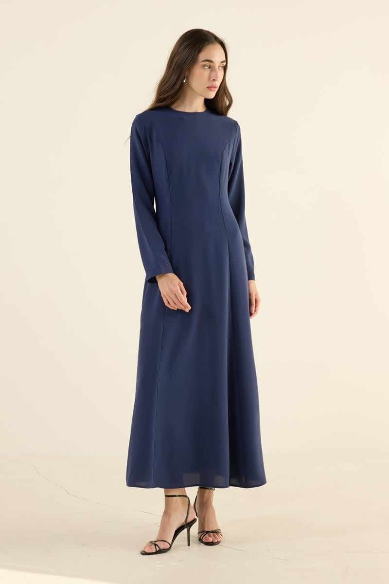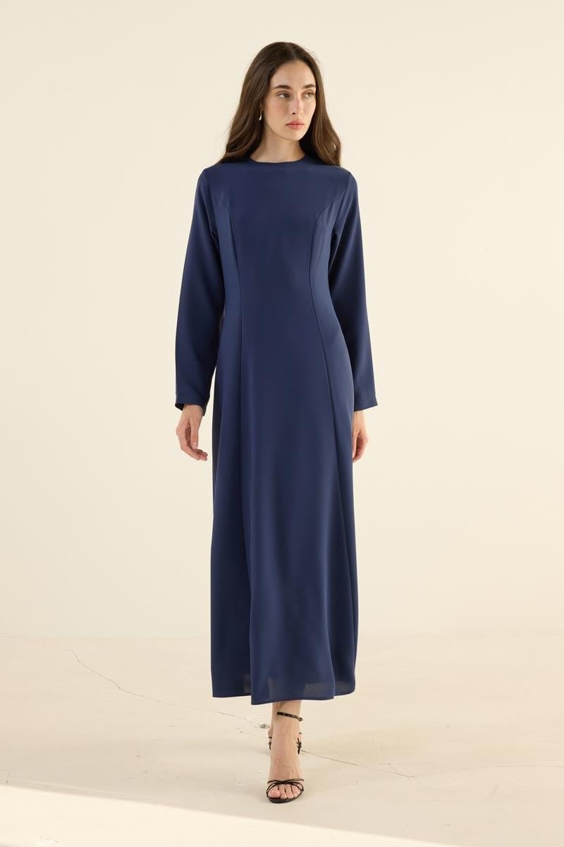 Navy Blue Scoop Neck Evening Dress