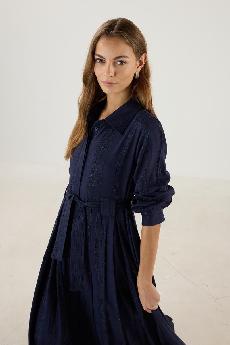 Be the first to review “Navy Blue Striped Dress with Bridge Detail” Cancel reply