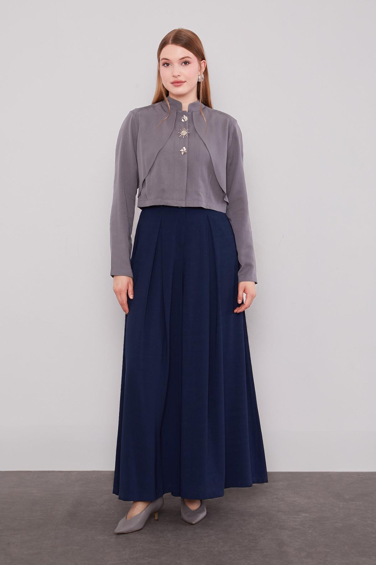 Navy Blue Wide-Leg Pleated Pant Skirt