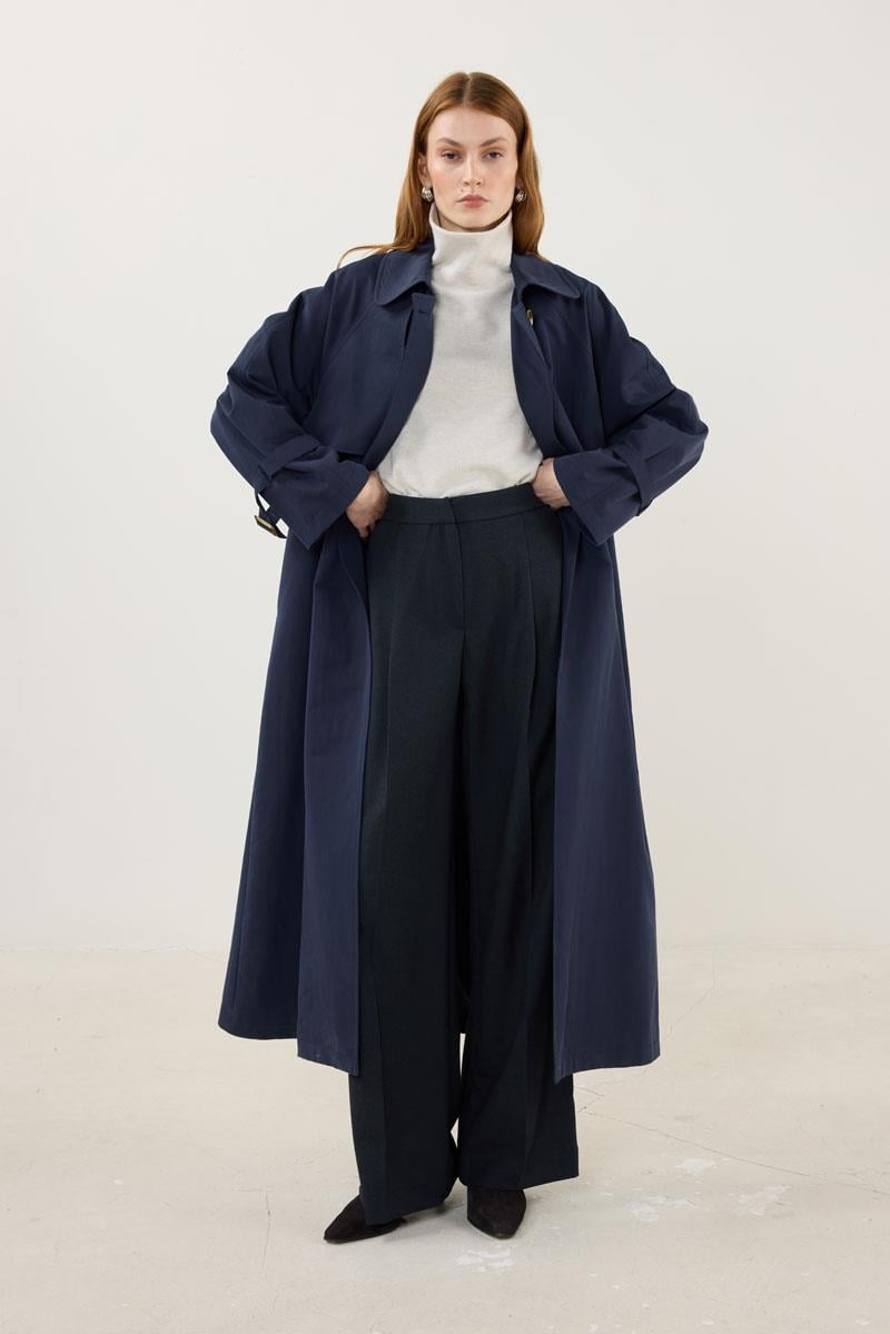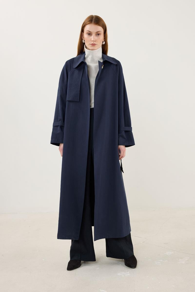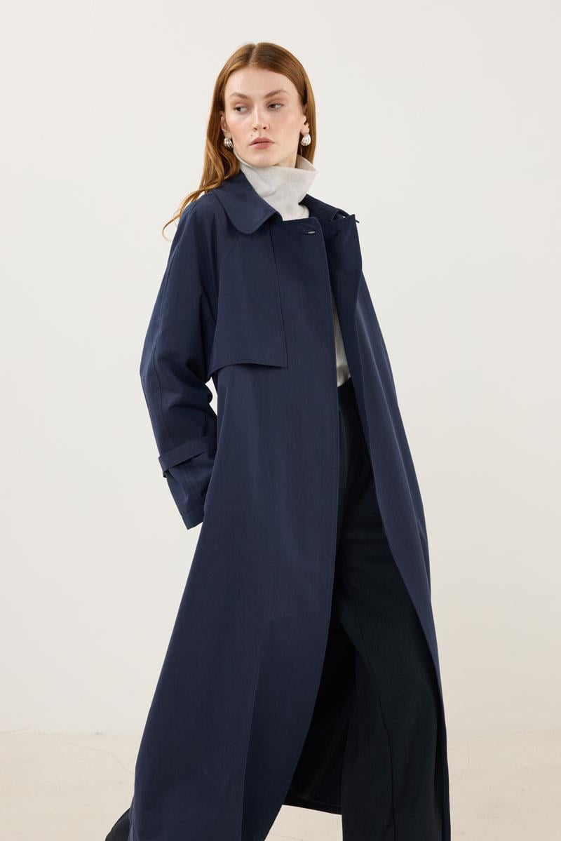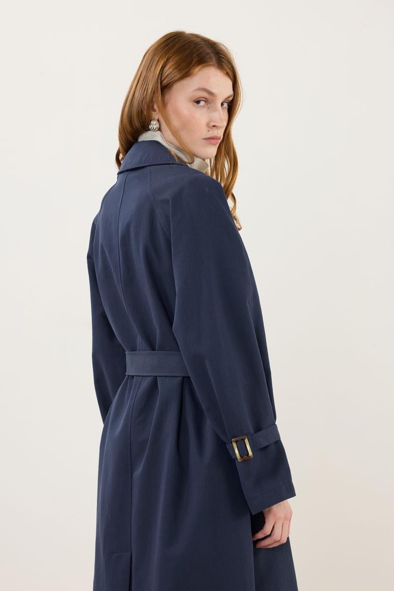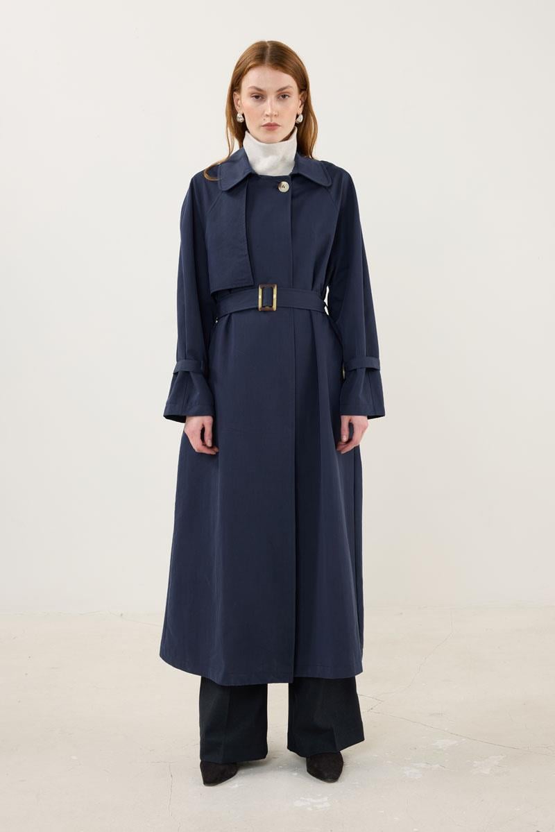 Kemerli Apoletli Trençkot – Lacivert